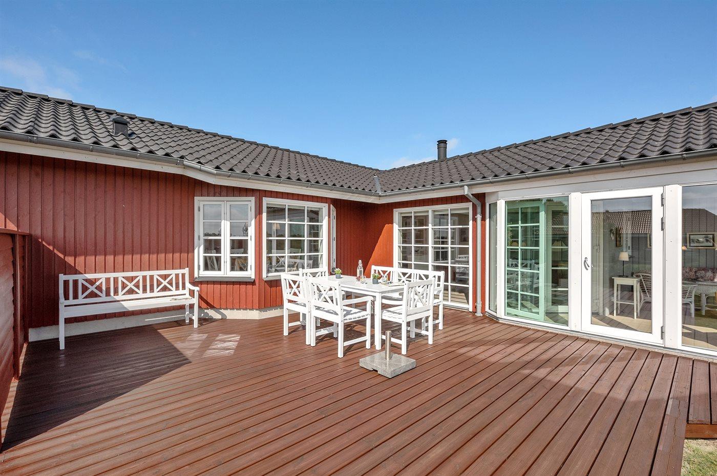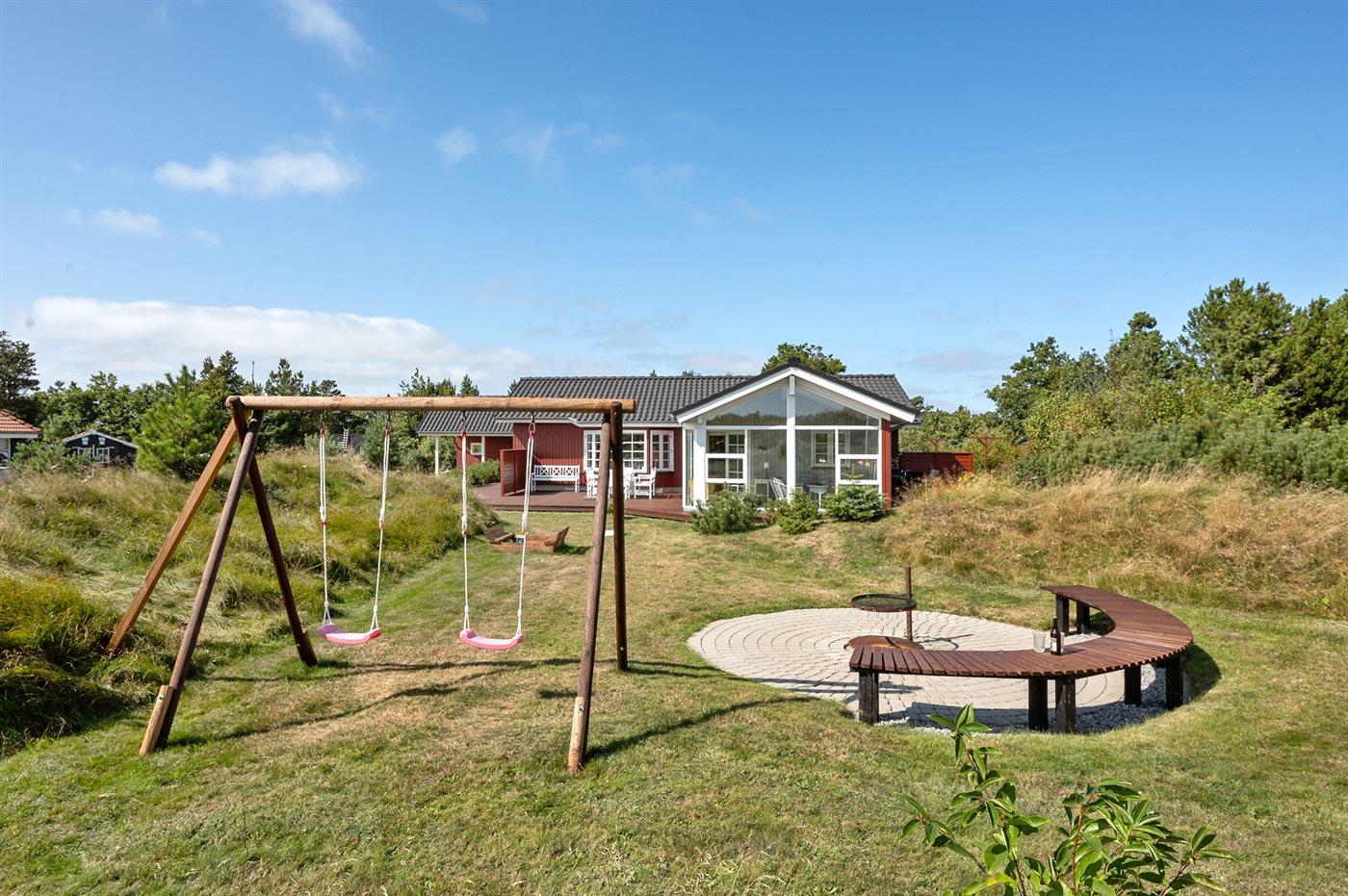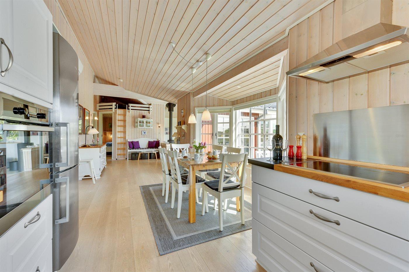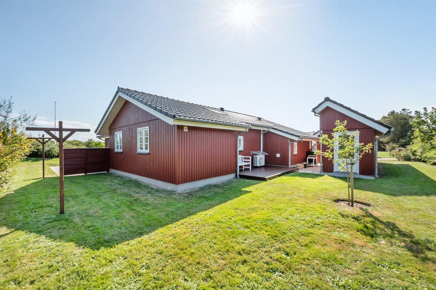Die Ferienunterkunft liegt auf einem 1194 m² großen Naturgrundstück. Die Entfernung zum Fjord beträgt 300 m. Die nächste Einkaufsmöglichkeit liegt 5000 m entfernt. Es steht ein 50 m² Terrassenareal zur Verfügung. Schaukel. Sandkasten. Es steht ein Carport zur Verfügung.