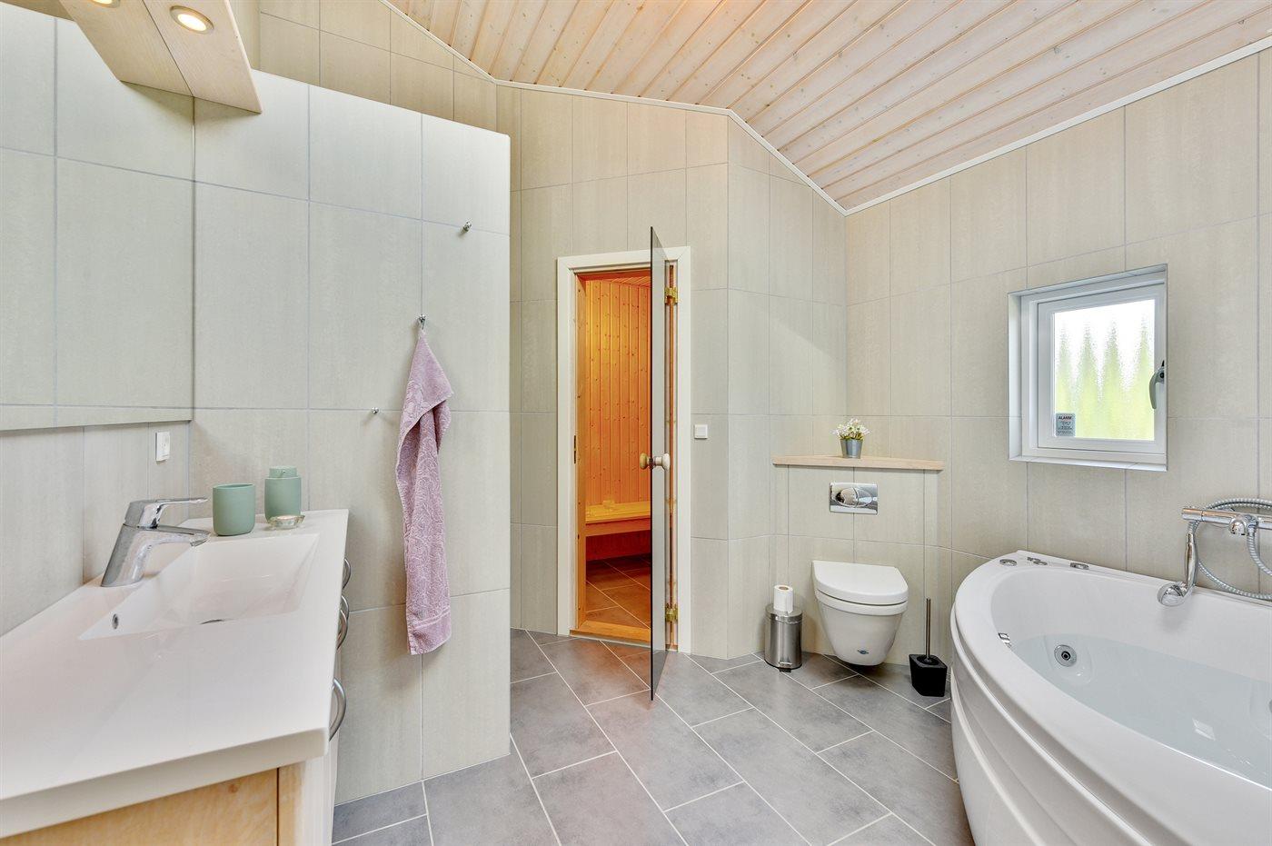 Es gibt 2 Badezimmer mit Duschnische und 2 Toiletten. Fußbodenheizung in 2 Badezimmern. Es steht eine Sauna zur Verfügung in der Sie sich so richtig entspannen können.