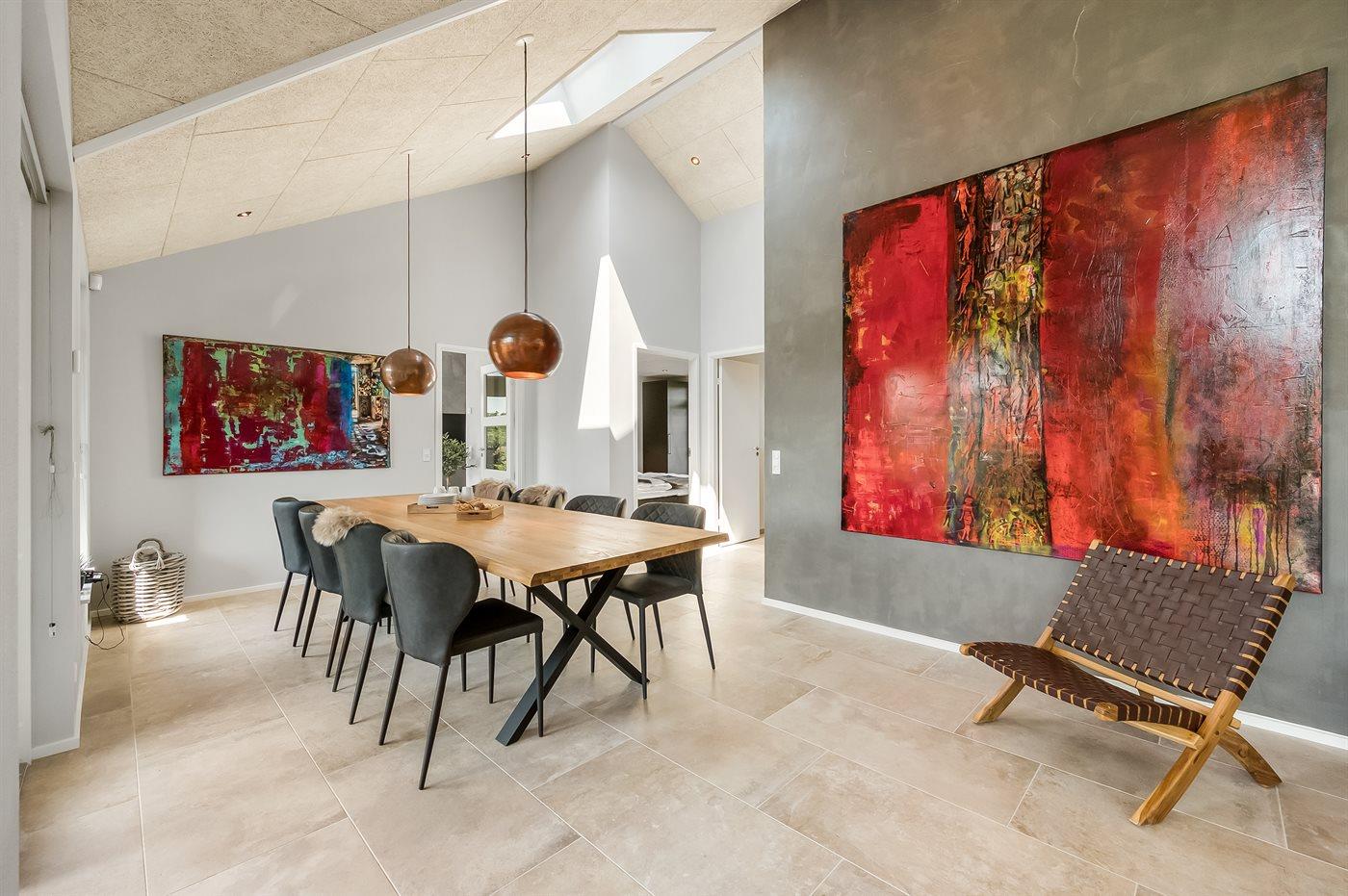 Ein schönes Ferienhaus mit einem Aktivitätsraum und einem fantastischen Außengelände mit großem Hot Tub und Außensauna. Das Haus liegt in der Nähe vom Fjord und dem Hafen von Stauning. Das Haus ist mit einem offenen Obergeschoss eingerichtet – hier findet man 2 der insgesamt 8 Schlafplätze.