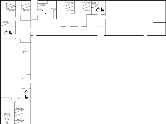 Die Schlafplätze verteilen sich auf 7 Schlafräume. 8 Schlafplätze in Doppelbetten. 6 Schlafplätze in Einzelbetten. 4 Schlafplätze in Etagenbetten. Ferner steht ein Kinderbett zur Verfügung.