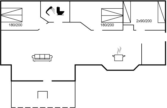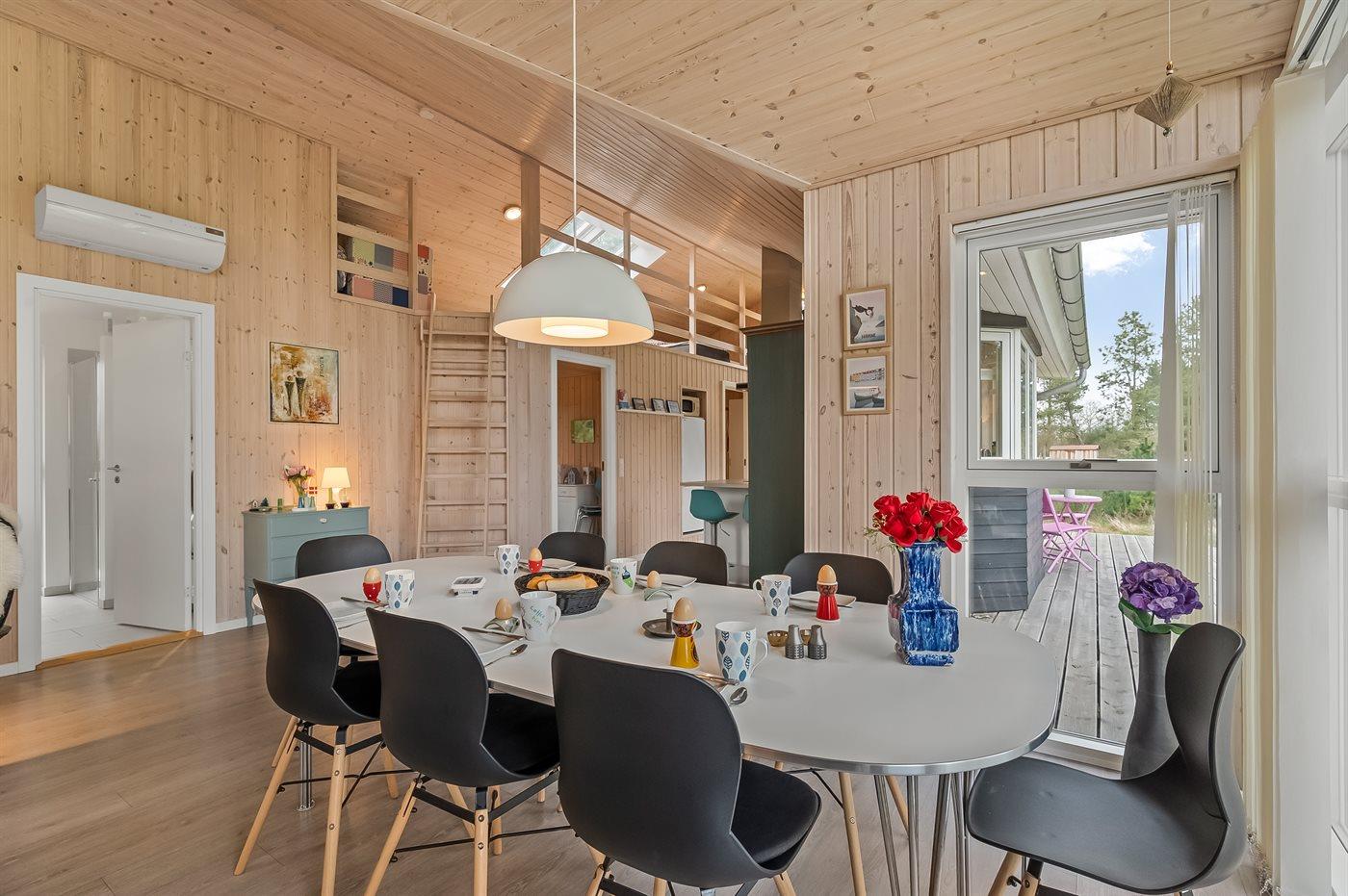 Das Ferienhaus verfügt über einen durchdachten Grundriss, der eine optimale Raumausnutzung im ganzen Haus gewährleistet. Die Wohnküche wird während des Urlaubs ganz sicher zum natürlichen Mittelpunkt für alle.