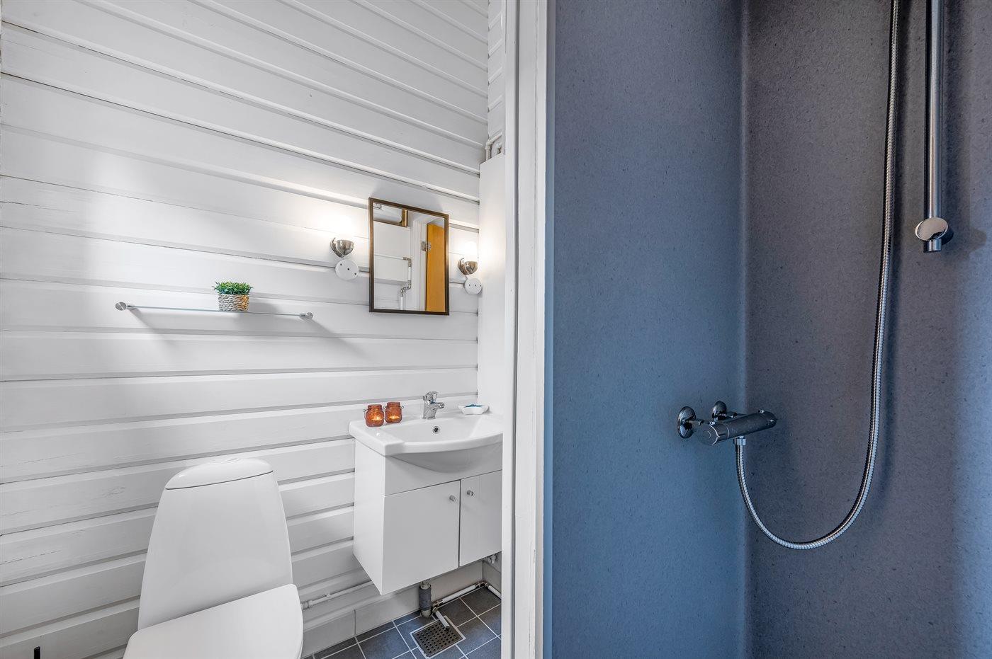 Es gibt 1 Badezimmer mit Duschnische und 2 Toiletten, davon 1 Gästetoilette.