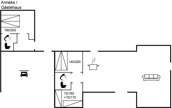 Die Schlafplätze verteilen sich auf 3 Schlafräume. 4 Schlafplätze in Doppelbetten. 2 Schlafplätze in Einzelbetten. 2 von diesen Schlafplätzen befinden sich im Gästehaus.
