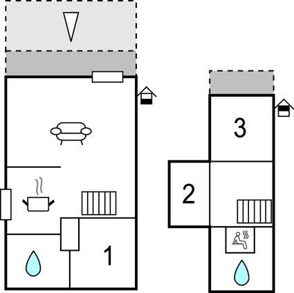 Badezimmer (nr. 2) - WC. Warmes und kaltes Wasser. Dusche