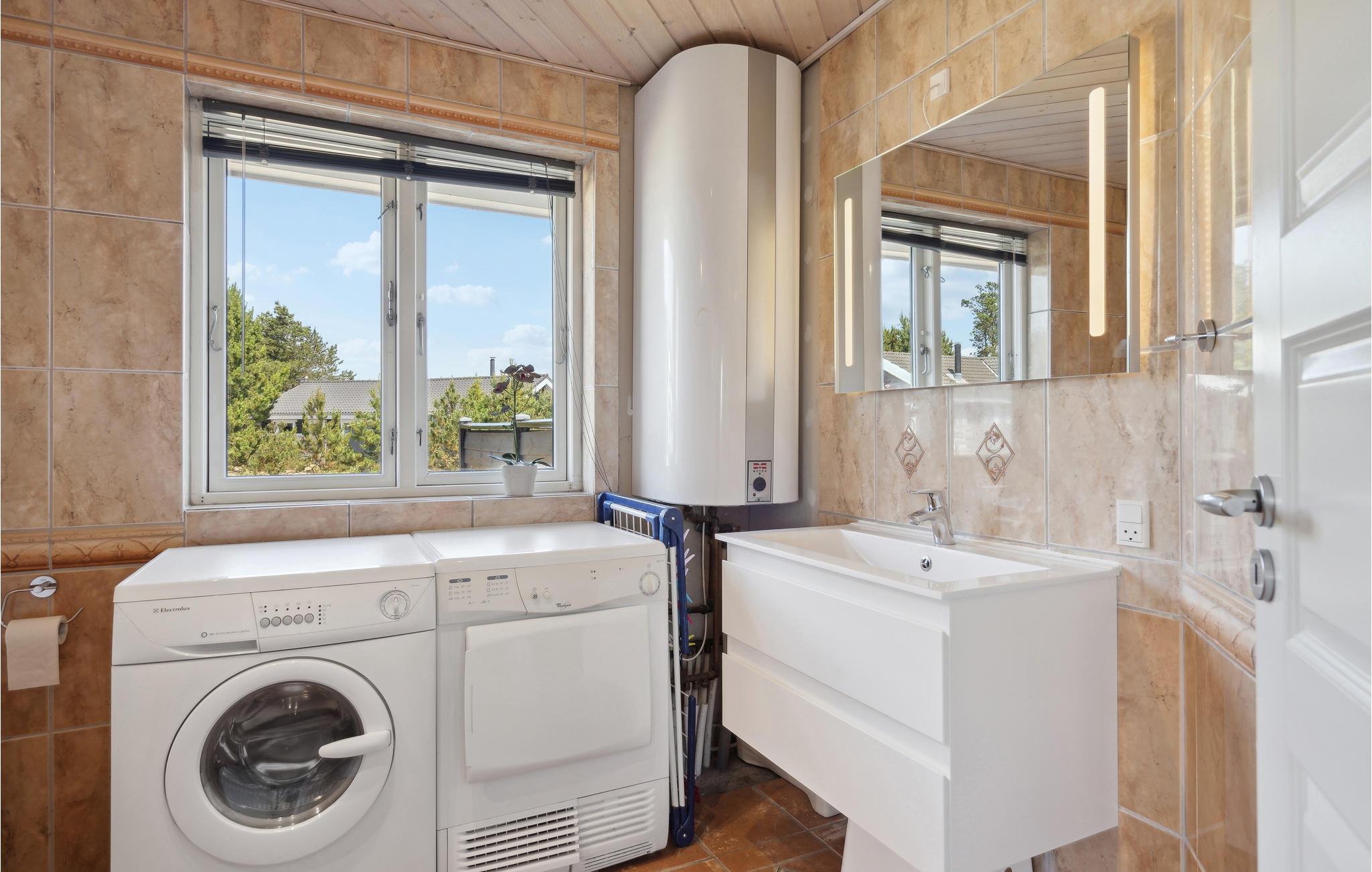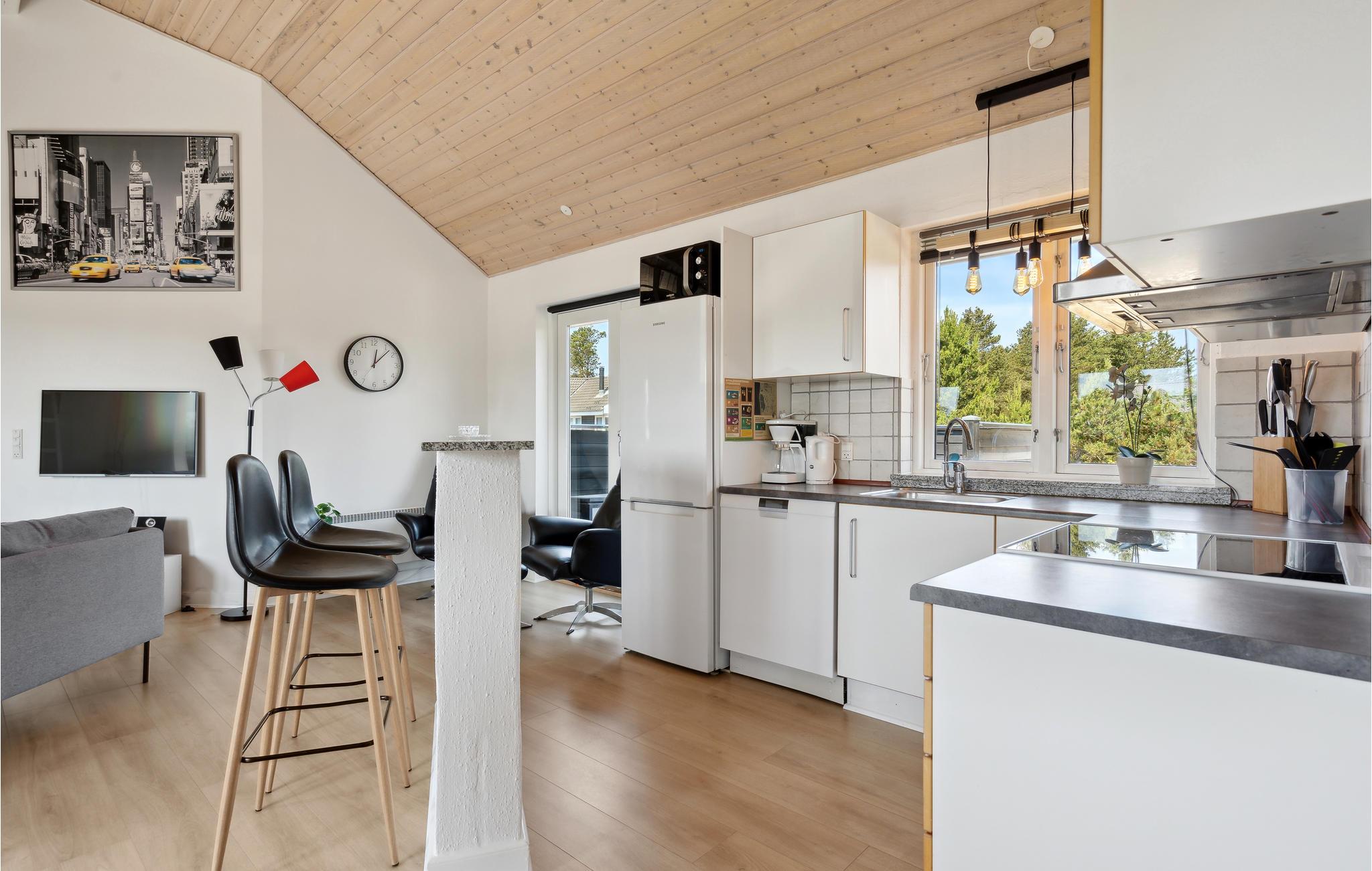 Dieses schöne Ferienhaus befindet sich in einer ruhigen Umgebung, in kurzer Entfernung von Ringkøbing Fjord. Das Haus beinhaltet alles, was für einen erholsamen Urlaub benötigt wird, hier gibt es hier gibt es einen Whirlpool , zwei Badezimmer, eine schöne Küche/Wohnzimmer und gute Schlafzimmer. Ein großer Flachbildschirm steht vor dem Sofa, daneben verbreitet das Knistern im Kaminofen herrliche Wärme. An das Wohnzimmer grenzen vier gute Schlafzimmer, verteilt in zweit Gruppen links und rechts vom Wohnraum mit eigenen Schlafböden. Auf mehreren Terrasse werden Sie schöne Stunden im Freien erleben, im Schutz vor dem Wind können Sie gut dinieren oder die Urlaubslektüre genießen. Die Gegend ist ideal für Wanderungen und Radtouren und die Gegend um den Stauning Hafen ist sehr nett. Wir empfehlen auch eine Rundtour in Der Stauning Whiskybrennerei. Wenn Sie einen Ausflug machen möchten, dann ist der Stauning Flughafen mit den alten Flugzeugen einen Besuch wert, dies gilt auch für Ringkøbing, eine wirklich schöne Stadt mit guten Geschäften und Restaurants. Die Stadt liegt nur 10 Minuten im Auto vom Ferienhaus. Setzten Sie fort in Richtung Søndervig, kommen Sie an Golfplätzen, Bowlinghalle, Geschäften und Restaurants vorbei. Eine Stunde Autofahrt sind Legoland und der Tierpark Givskud entfernt.