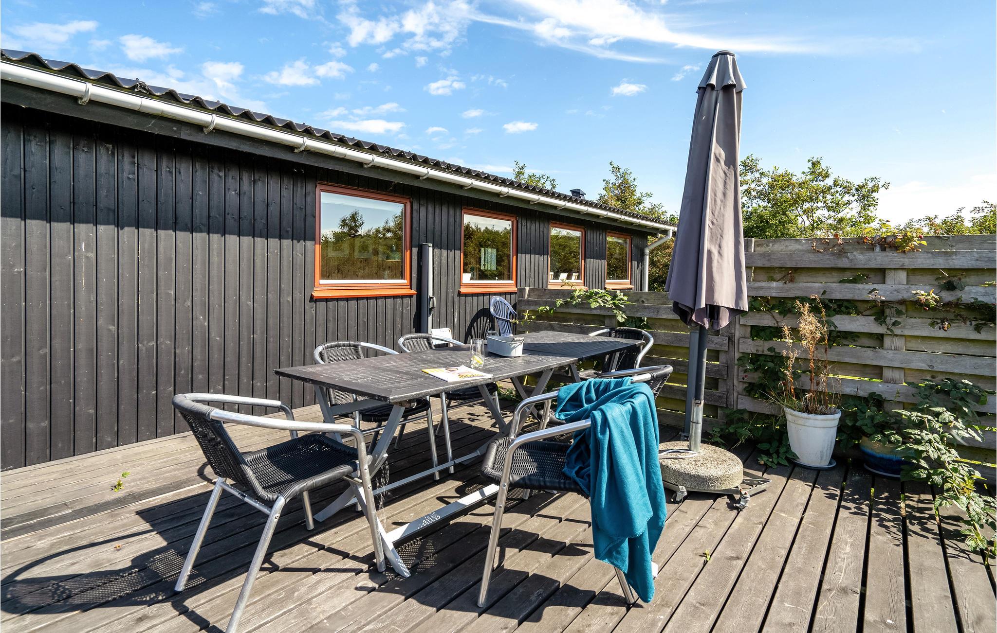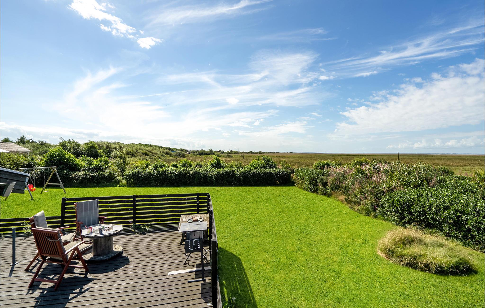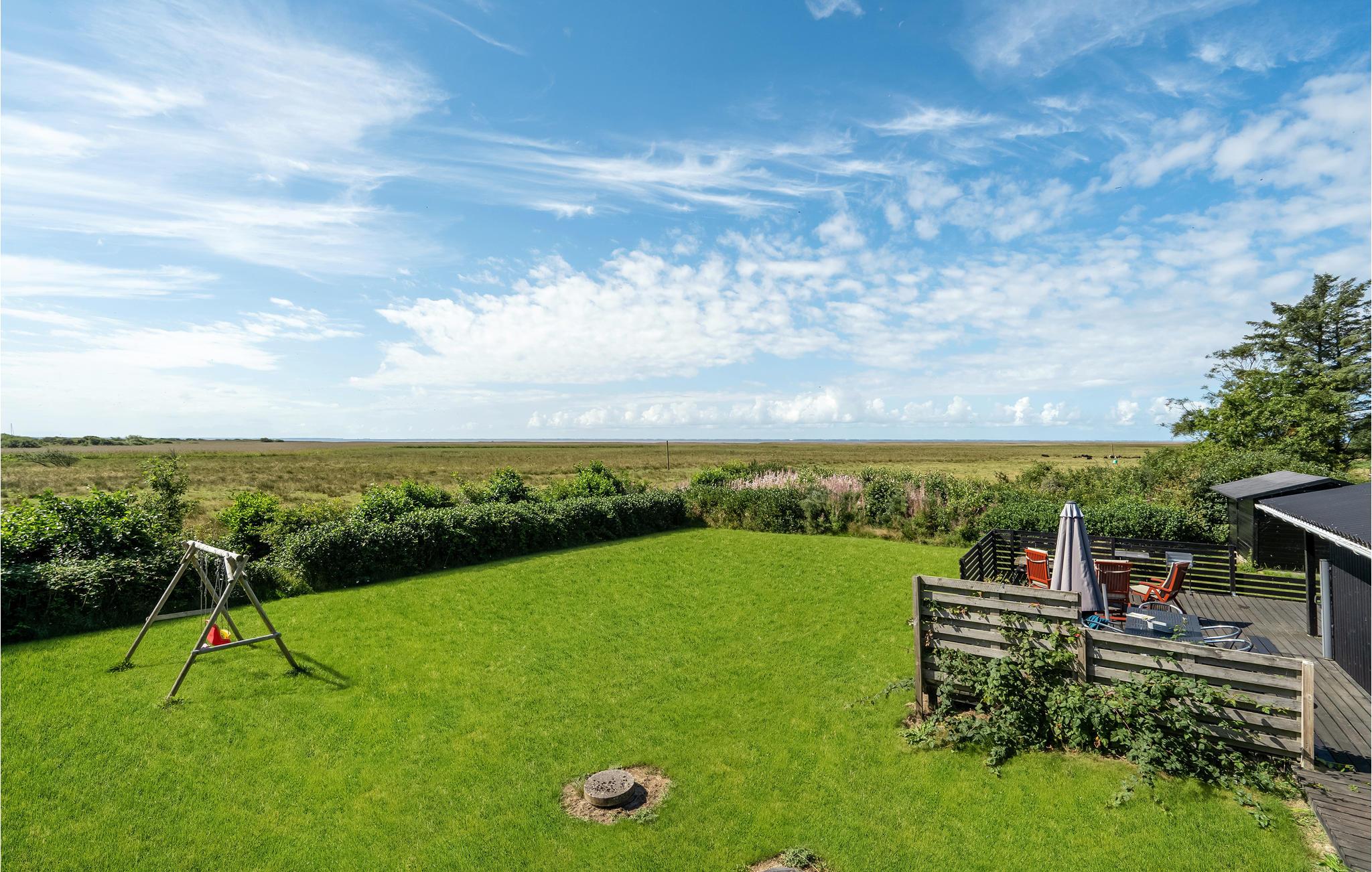 Gemütliches Holzhaus mit Fjordblick, Terrasse und Garten in Stauning, ideal für Familien mit Haustieren.