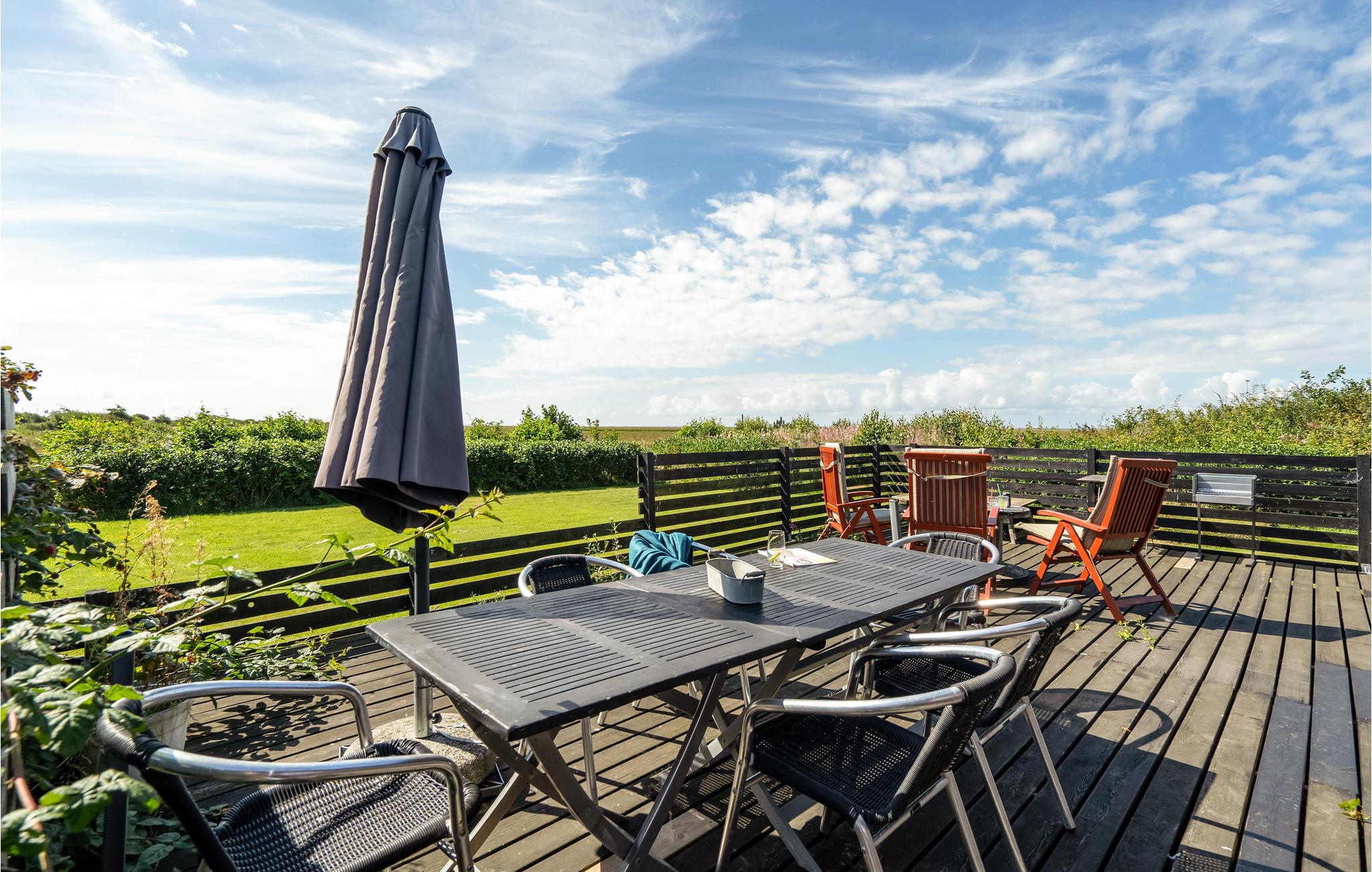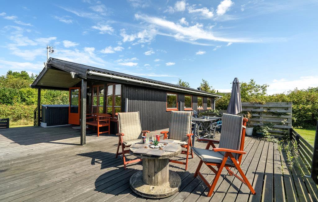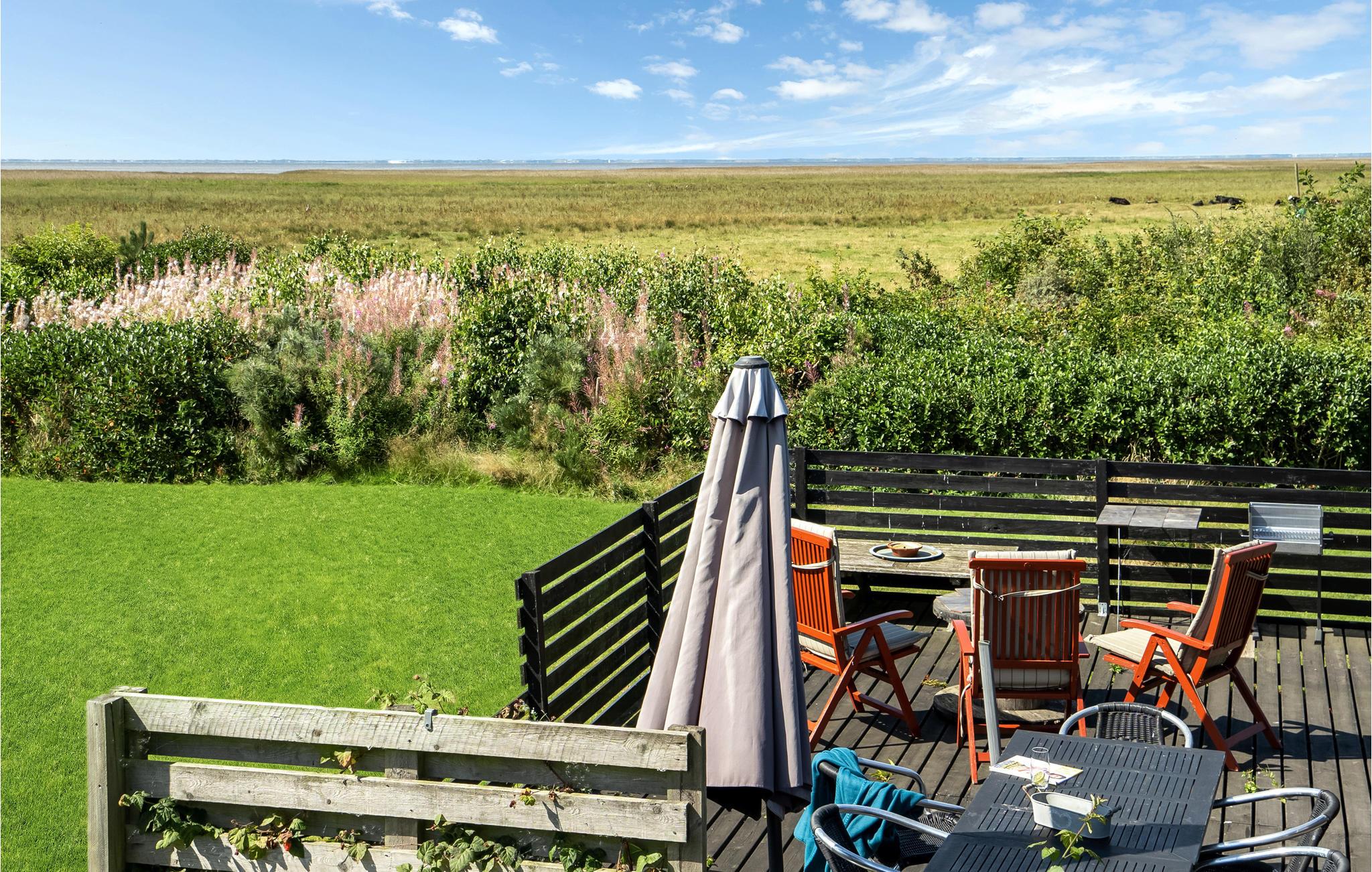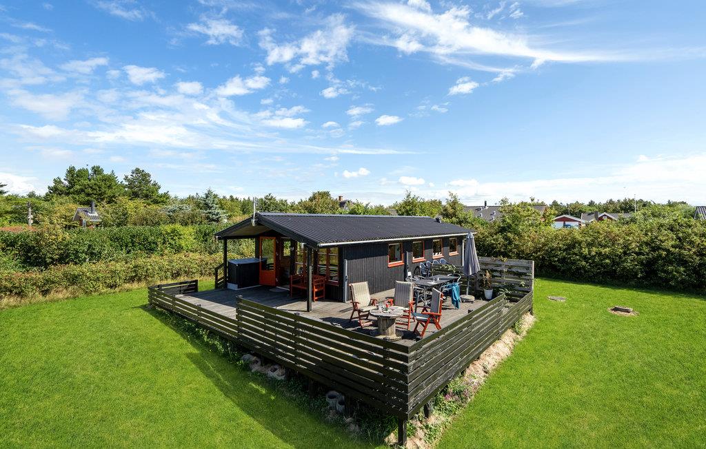 Gemütliches Holzhaus mit Fjordblick, Terrasse und Garten in Stauning, ideal für Familien mit Haustieren.