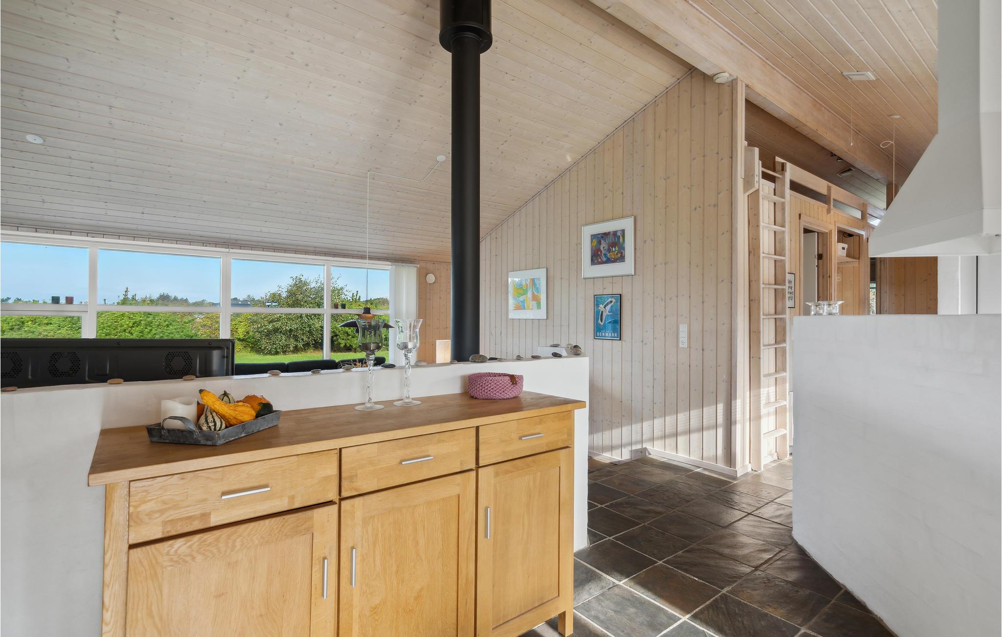 Willkommen! Sie können hier Ihren Urlaub in der Nähe des idyllischen Ringkøbing Fjords verbringen und sich in diesem hellen und großen Ferienhaus wie zuhause fühlen. Blicken Sie durch die großen Panoramafenster in den Garten und machen es sich auf dem Sofa, mit einem prasselnden Kaminfeuer, beim Stricken gemütlich. Hier finden Sie alles vor, um einen unbeschwerten Urlaub zu erleben. Genießen Sie die Sonnenstrahlen auf der Terrasse und im Garten und lauschen dem Vogelgezwitscher in den Bäumen und im Gebüsch.