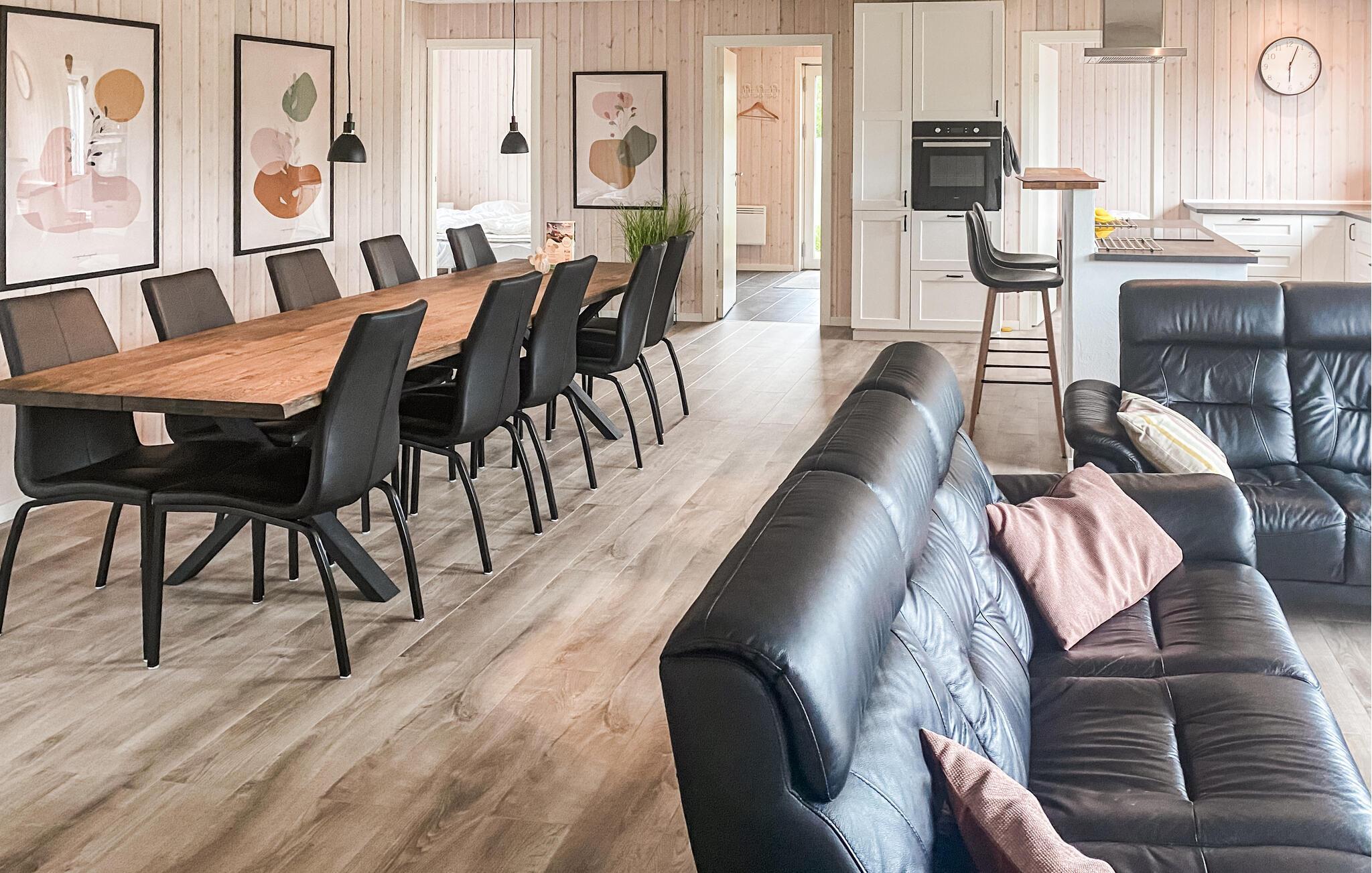 Verbringen Sie einen entspannten und komfortablen Ferienhausurlaub in der Nähe von Stauning am wunderschönen Ringkøbing Fjord. Im Inneren des Hauses erwartet Sie ein lichtdurchfluteter Wohnbereich und ein schönes Holzambiente. Nutzen Sie die bequemen Sofas für gesellige Filmabende oder gemütliche Lesestunden. Kochen Sie in der voll ausgestatteten Küche gemeinsam mit der Familie und kommen Sie am langen Esstisch zu den gemeinsamen Mahlzeiten und zu lustigen Spieleabenden zusammen. Die moderne Einrichtung und das stilvolle Design schaffen eine angenehme Atmosphäre.