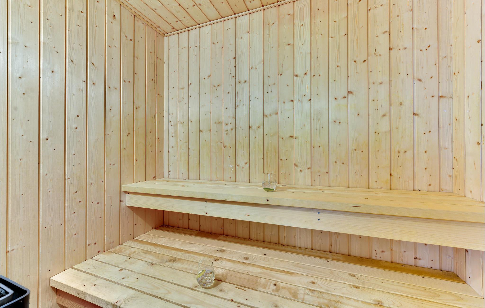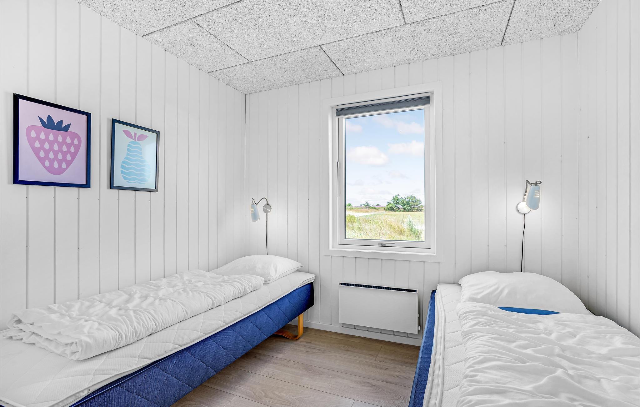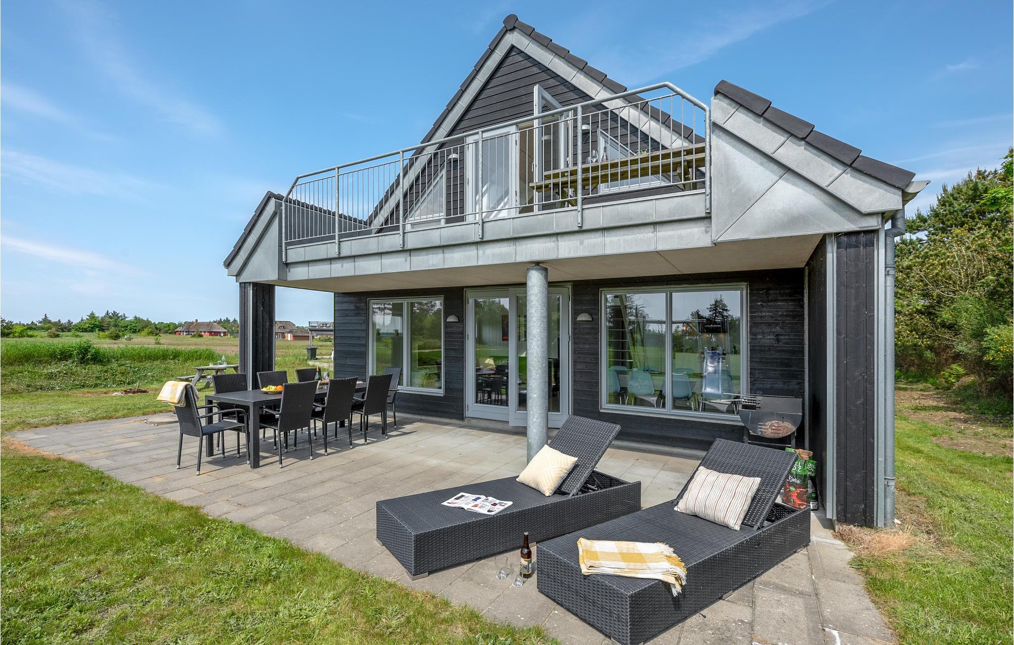 In fantastischer Lage finden Sie dieses Ferienhaus, das in ruhiger Umgebung in der Nähe des Ringkøbing Fjord und dem Ort Stauning liegt. Das Haus enthält alles, was zu einem erholsamen Urlaub dazu gehört. Das Haus hat zwei Badezimmer, in einem davon befindet sich eine Sauna. Das Herzstück des Hauses ist die große, sehr schön helle Wohnküche, wo Sie auch eine Sofaecke vor dem großen Flachbildschirmfernseher genießen können, während das Feuer im Kaminofen knistert. Von hier gelangen Sie auf die große überdachte Terasse und auf die offene Terasse. Das Haus hat drei gute Schlafzimmer, die in der Mitte des Hauses liegen, und am entgegengesetzen Ende der Wohnküche befindet sich der Lieblingsteil von Kindern, der Aktivitätsraum mit Billardtisch und einem Flachbildschirm. Hier können Sie viele Stunden mit Duellen und Turnieren verbringen (in diesem Raum steht auch ein Schlafsofa). Im ersten Stock liegt ein kleines Wohnzimmer mit Zugang zu einer schönen Terasse mit fantastischem Ausblick auf den Ringkøbing Fjord.