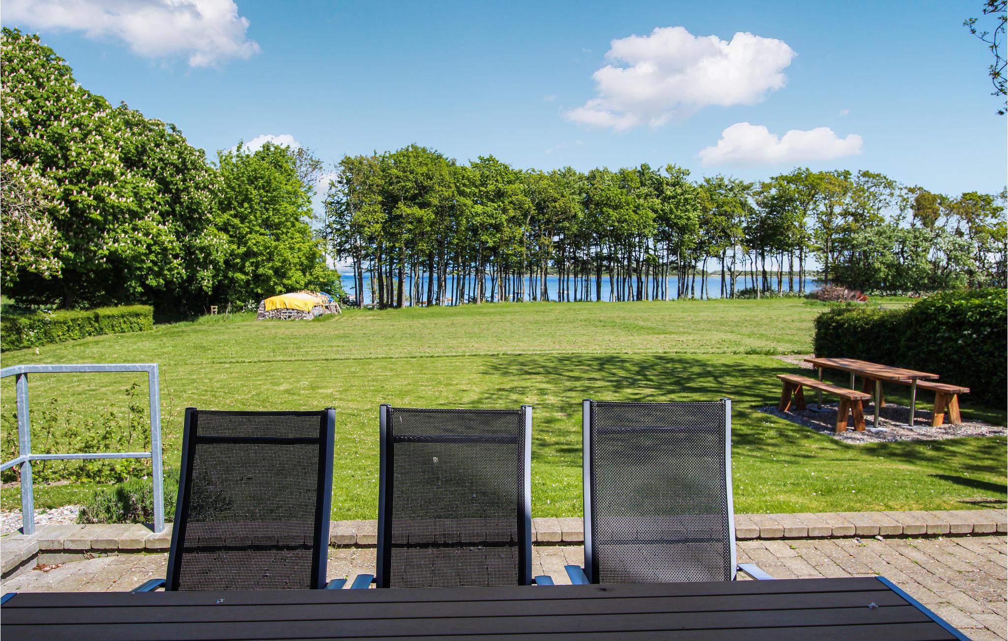Ferienhaus mit herrlichem Fjordblick auf Samsø, warmem Ambiente und großer Terrasse für entspannte Urlaubstage.