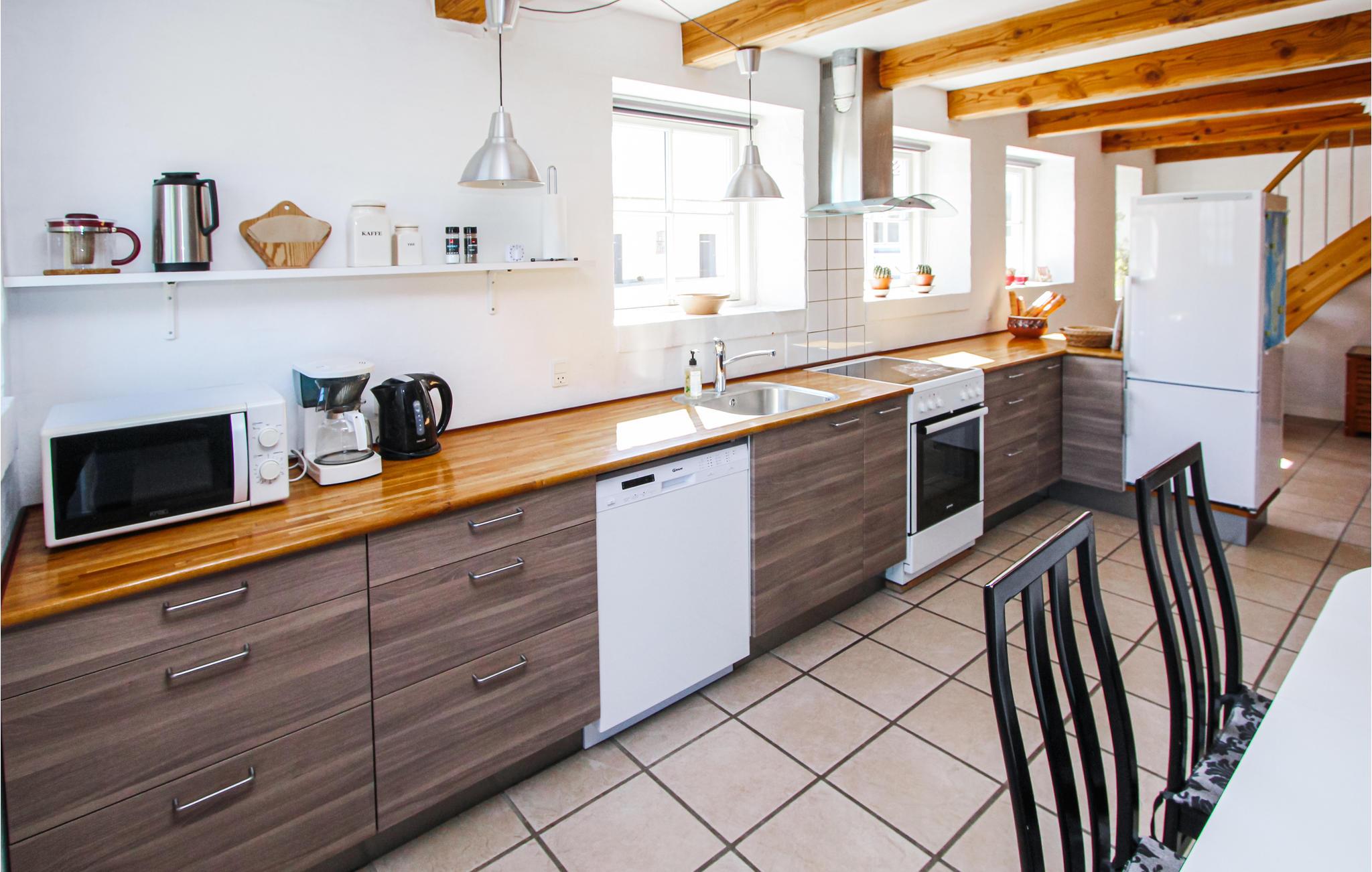 Das Ferienhaus empfängt seine Gäste auf einem Grundstück direkt am Stavns Fjord. In den hellen Räumen werden Sie sich gleich wohlfühlen. Hölzerne Deckenbalken, Treppen und Böden verleihen dem Haus eine warme Ausstrahlung. Bereiten Sie in der geräumigen Küche zusammen die Mahlzeiten zu und essen Sie draußen auf der Terrasse mit Aussicht auf den Fjord. Anschließend können Sie in einem der Liegestühle vor dieser zauberhaften Kulisse entspannen, besor Sie später zum Strand spazieren.