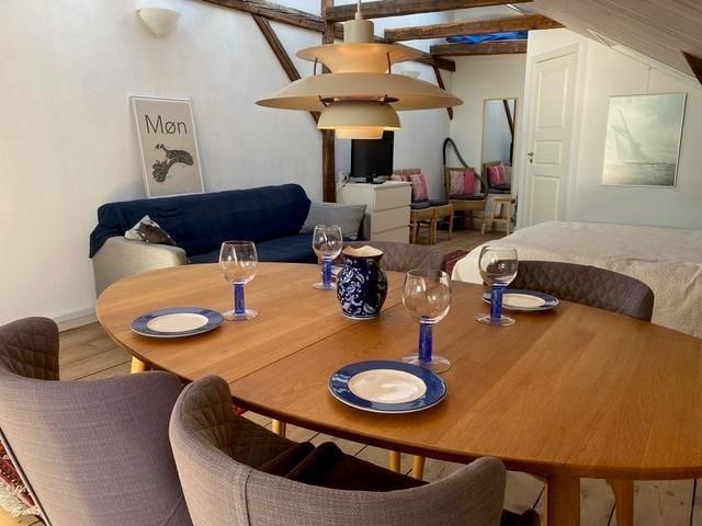 Bezaubernde Stadtwohnung im ersten Stockwerk, mitten in Stege und mit einer prächtigen Aussicht über den Stege Nor.
