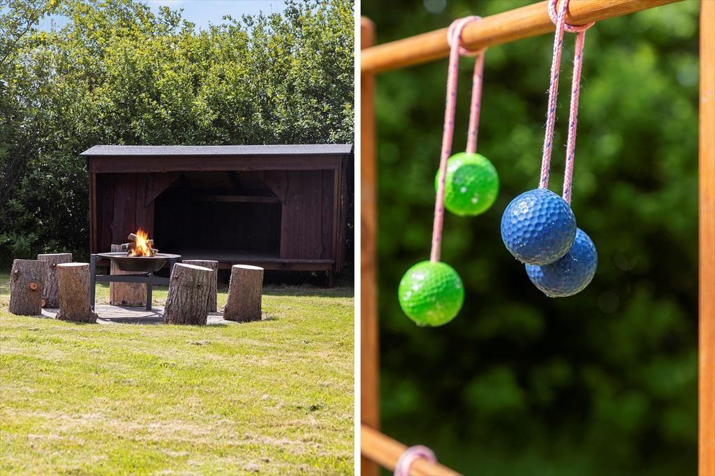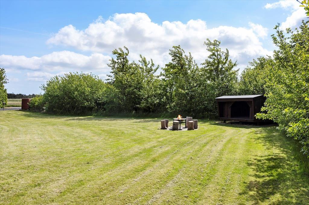Im Außenbereich erwartet Sie eine geschützte Terrasse, die nicht nur für entspannte Sonnenstunden, sondern auch für Ihren Hund bestens geeignet ist. Ein Highlight ist der Shelter mit Platz für 3-4 Personen – ideal für abenteuerliche Übernachtungen unter freiem Himmel. Hier können Sie unvergessliche Abende am Lagerfeuer genießen und die klare Luft Nordjütlands in vollen Zügen einatmen.
