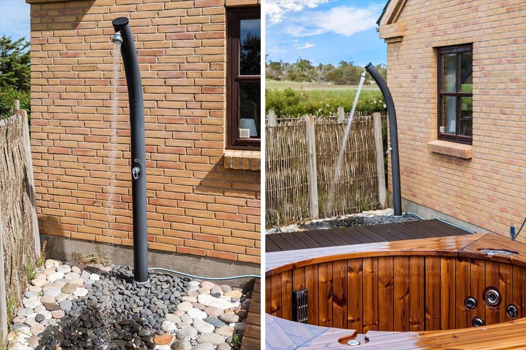 Draußen eröffnen die reizvollen Außenbereiche des Ferienhauses eine Welt voller Sinneseindrücke und Entspannung. Hier können Sie die frische Meeresbrise spüren und das Rauschen der Wellen hören, die sich langsam dem Strand nähern. Der liebevoll angelegte Garten und die gepflegten Grünflächen laden sowohl zum Spielen als auch zur Erholung ein, sodass Sie auf der Terrasse einen sonnigen Morgenkaffee genießen oder einen gemütlichen Grillabend unter freiem Himmel veranstalten können. Die ansprechenden Außenbereiche sind so gestaltet, dass sie sowohl kindliche Spielfreude als auch erwachsene Ruhe ermöglichen, und die offene Atmosphäre macht es einfach, Familie und Freunde zu einem Tag im Freien einzuladen. Ob Sie sich entscheiden, einen ruhigen Moment mit einem guten Buch im Schatten eines Baumes zu genießen oder barfuß über den weichen Rasen zu laufen – Sie werden spüren, dass dieser Ort darauf ausgelegt ist, Ihre Sinne zu wecken und Ihnen ein Gefühl von Freiheit und Nähe zur Natur zu vermitteln.