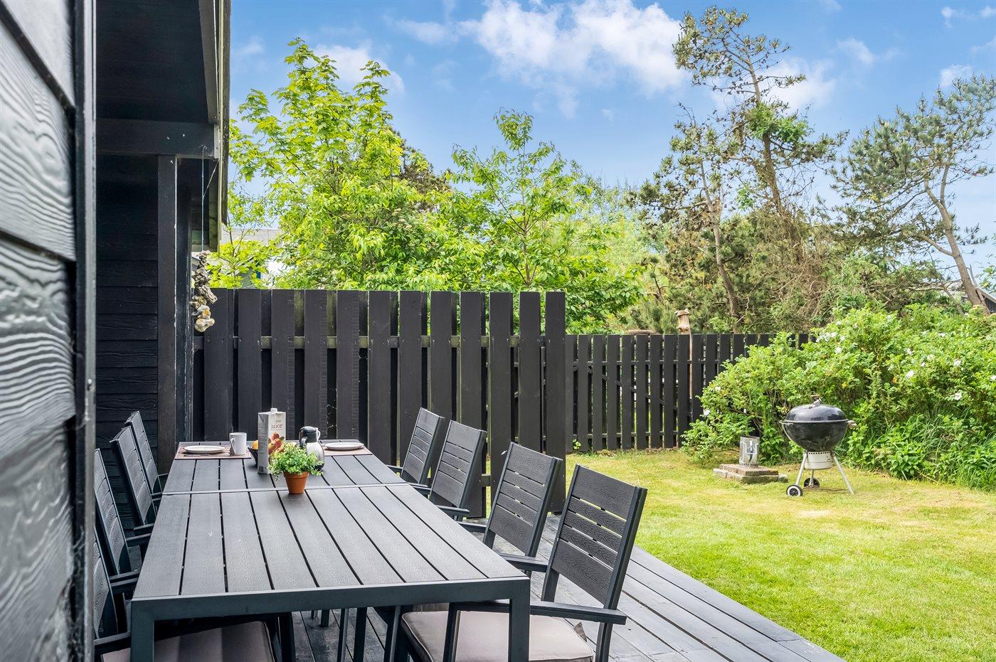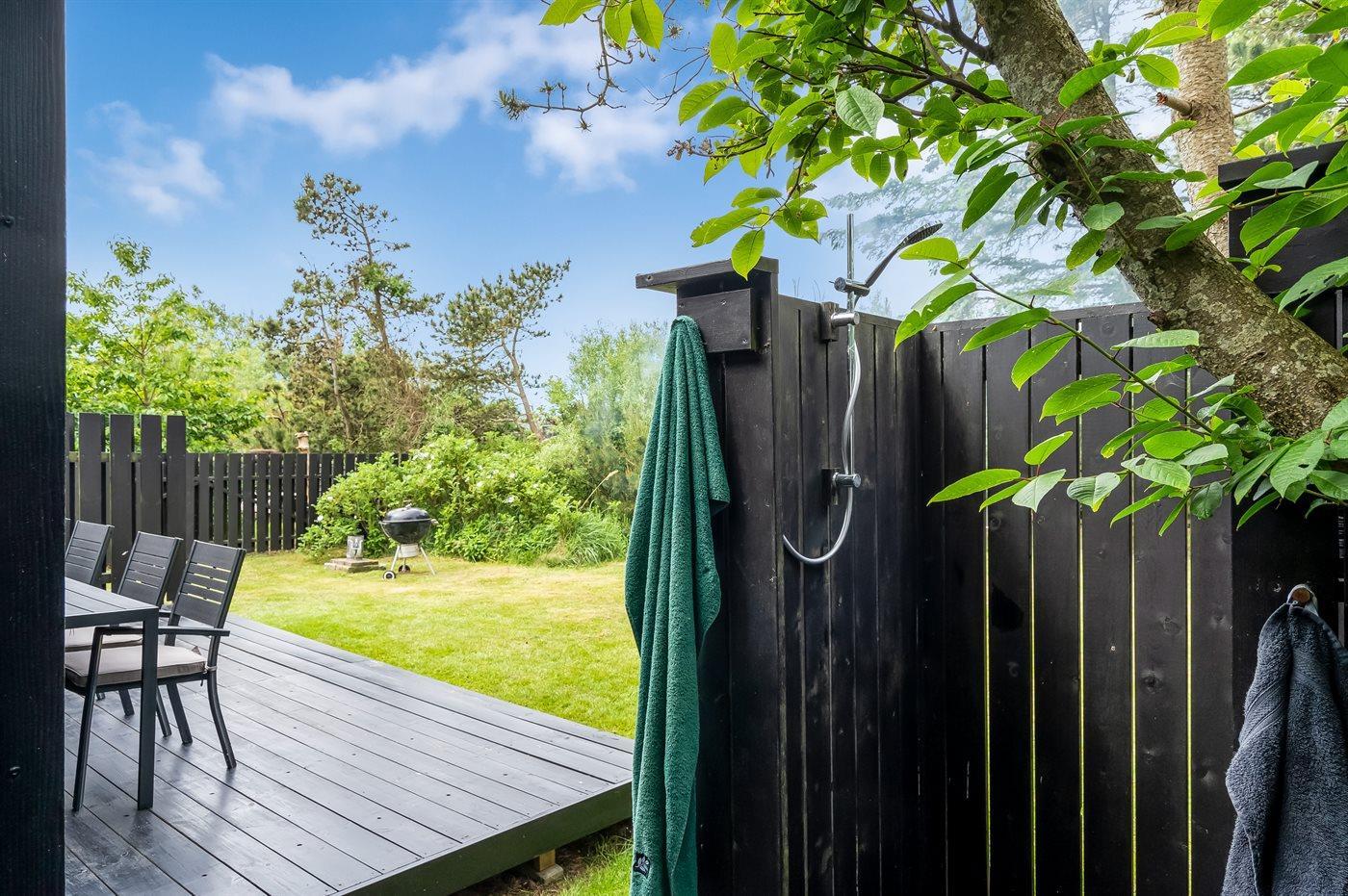 Die Ferienunterkunft liegt auf einem 739 m² großen Naturgrundstück. Die Entfernung zum Meer beträgt 2000 m. Die nächste Einkaufsmöglichkeit liegt 2000 m entfernt. Es steht ein 10 m² Terrassenareal zur Verfügung. Außerdem gibt es 20 m² überdachte Terrasse. Geräteraum. Schaukel. Außendusche. Es steht ein Grill zur Verfügung. Es ist ein Ladestecker für Elektroautos installiert. Ladestecker Typ 2. Mit einer Ladeleistung von 11 kW. Parkplatz auf dem Grundstück.