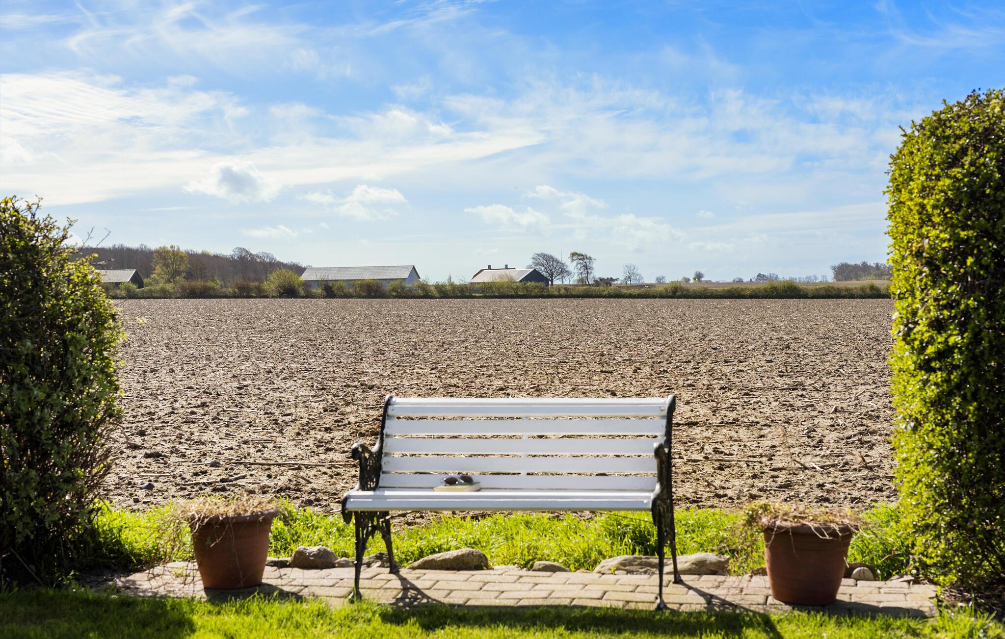 Idylle pur bietet Ihnen dieses gemütliche Ferienhaus. Mit Aussicht auf die angrenzenden Felder und Wiesen und einem schönen Blick auf das glitzernde, blaue Meer wird Ihnen hier so einiges geboten. Hier beginnt der Tag in aller Ruhe mit einer Tasse Kaffee und einem umfangreichen Frühstück mit der ganzen Familie. In der offenen Küche können Sie auch die übrigen Mahlzeiten des Tages zubereiten. Im Wohnbereich herrscht eine Atmosphäre der Ruhe, die zum Entspannen und zu geselligem Beisammensein einlädt. Dabei macht der Blick auf die Terrasse und das weitläufige Grundstück Lust auf Zeit im Freien. Genießen Sie einen leckeren Snack auf der Terrasse oder grillen Sie hier abends. Viel Platz für weite Würfe mit einem Frisbee oder für Ballspiele bietet der große Rasen.