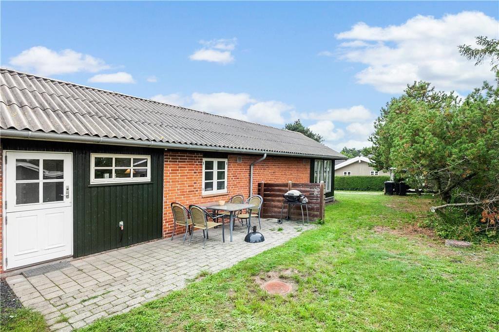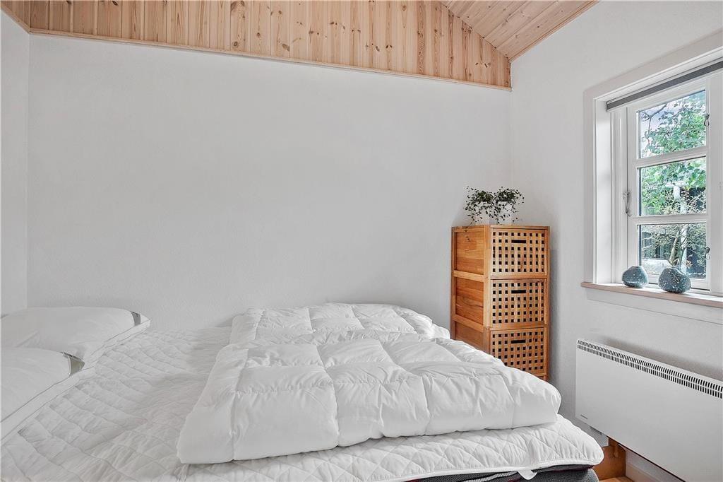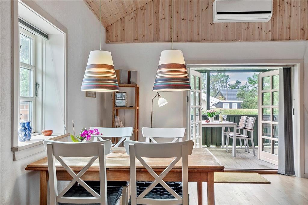 Dieses renovierte Ferienhaus verfügt über Küche und Wohnbereich, die separat liegen. Die helle und gut ausgestattete Küche mit Einbauherd mit Ceran-Kochfeldern, Geschirrspülmaschine, Kühlschrank mit kleinem Gefrierfach, Mikrowelle und Waschmaschine, hat einen Ausgang zur Terrasse. Im Wohnzimmer, ebenfalls mit Zugang zur Terrasse, befinden sich ein gemütlicher Essbereich, ein Sofa sowie der Fernseher mit dänischen Sendern sowie deutschem ZDF, Chromecast. Das Bad mit Duschnische ist gefliest und verfügt über eine Fußbodenheizung. Von den beiden Schlafzimmern ist das eine mit einem Doppelbett und das andere mit zwei Einzelbetten ausgestattet. Das Haus wird mit Wärmepumpe und elektrischen Heizkörpern geheizt.