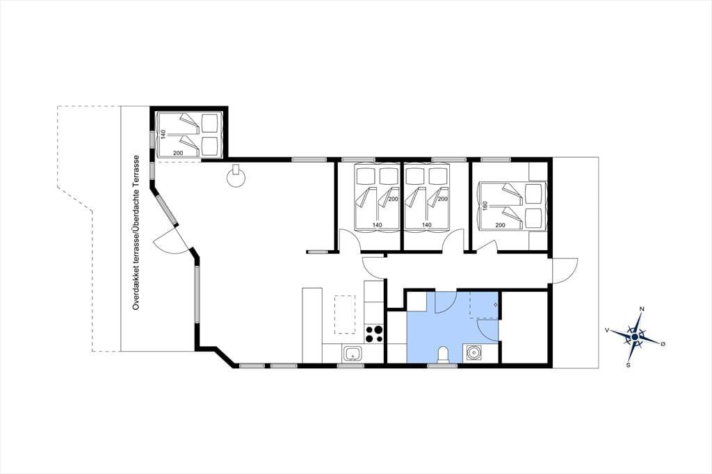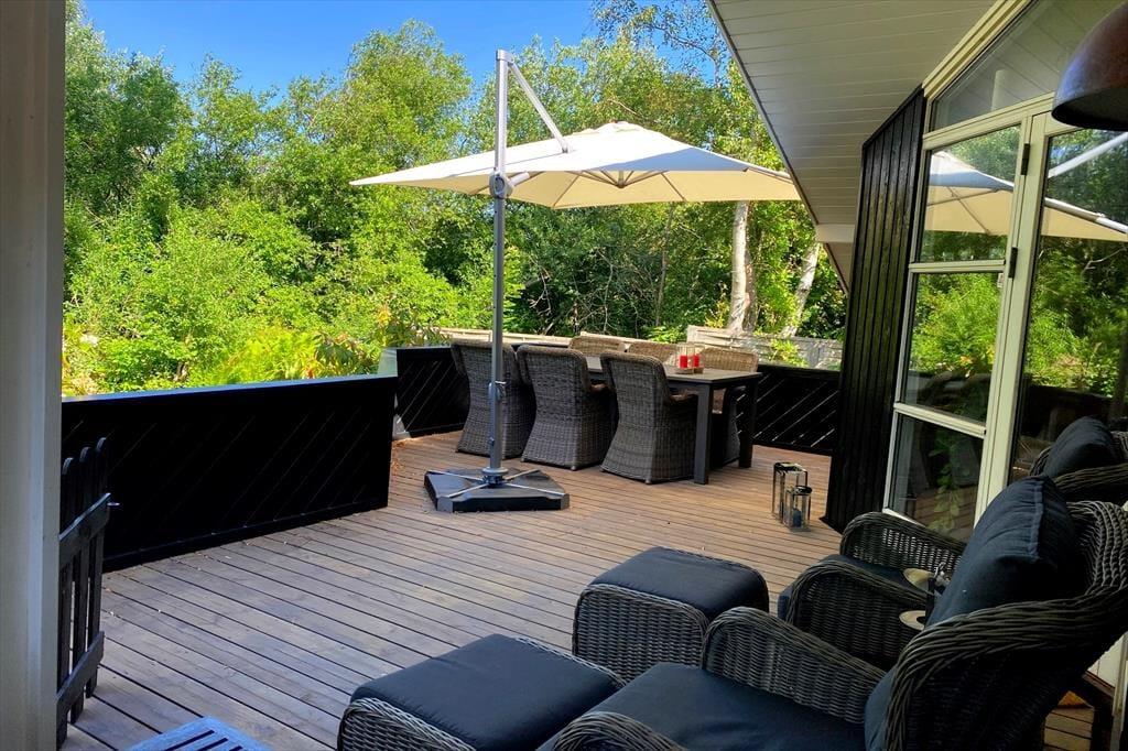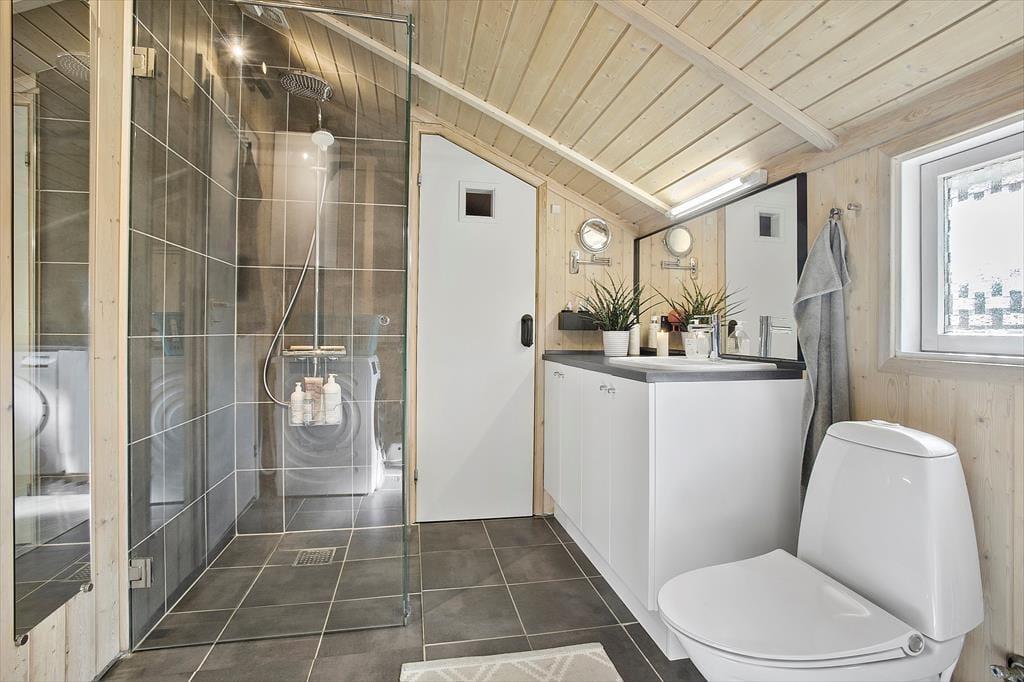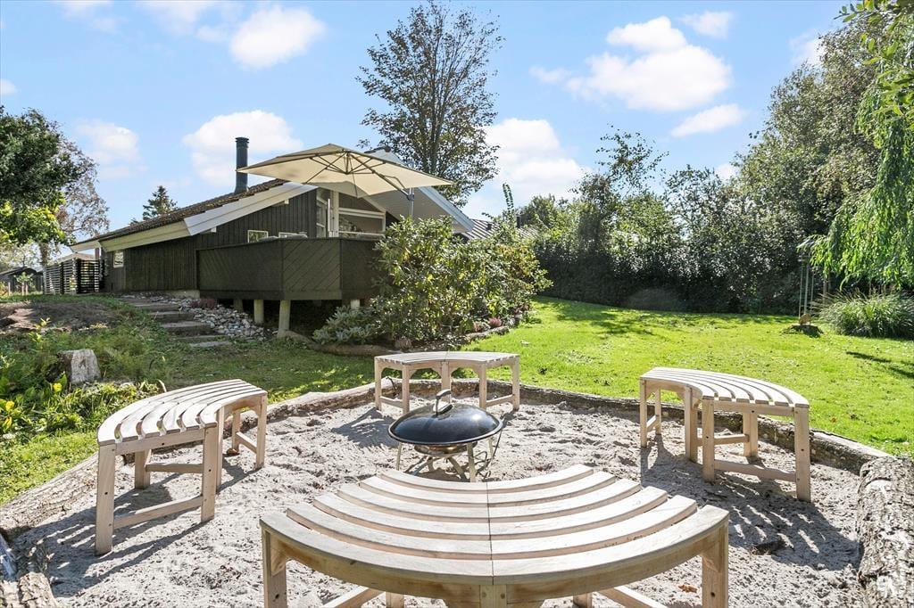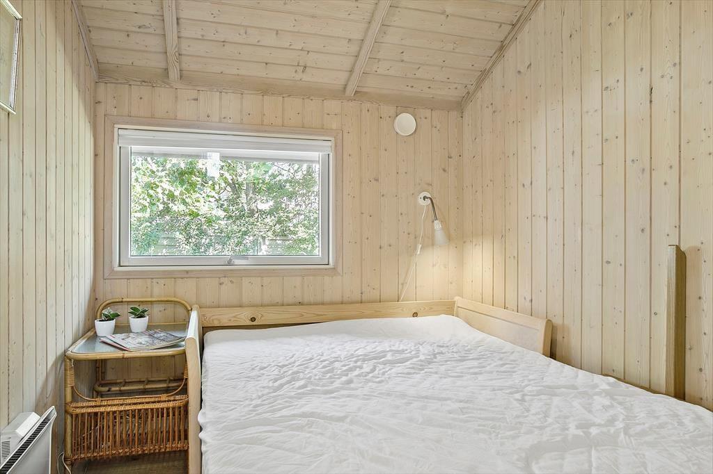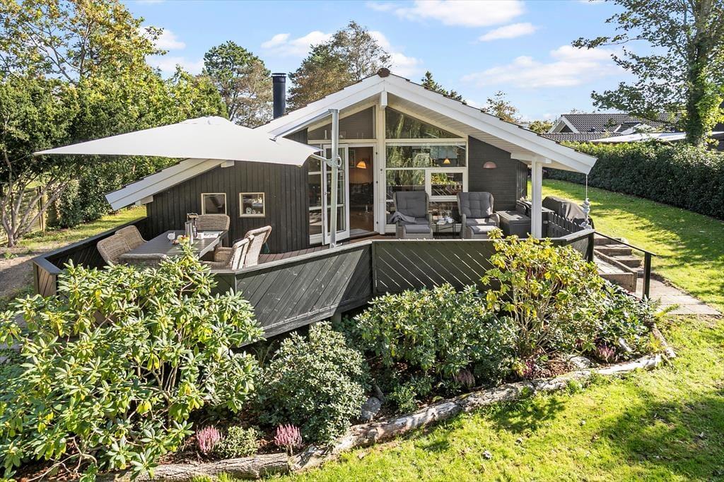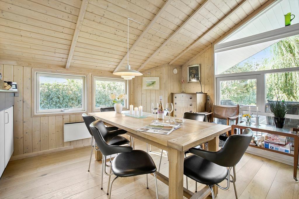 Das schöne Ferienhaus für sechs Personen verfügt über einen offen kombinierten Küchen,- Wohn- und Essbereich. In der Küche stehen ein Herd, ein Geschirrspüler, eine Mikrowelle und ein Kühlschrank mit Gefrierfach für Sie bereit. Im Wohnraum mit hohen Decken sorgen große Fensterpartien für einen tollen Tageslichteinfall. Durch die Terrassentür treten Sie hinaus auf eine überdachte Terrasse. Der Wohn- und Essbereich umfasst einen schönen Essplatz, einen Kaminofen und eine Polstersitzgruppe. Für Unterhaltung und Abwechslung sorgt ein Smart-TV mit dänischen Fernsehsendern und Chromecast. Mittels Chromecast können Sie Ihre privat abonnierten Streamingdienste nutzen. Das Badezimmer beinhaltet eine Sauna, eine Duschnische, eine Waschmaschine, einen Wäschetrockner und eine Fußbodenheizung. Die drei Schlafräume verfügten über jeweils ein Doppelbett. Zwei weitere Schlafplätze bietet die Schlafnische im Wohnraum. Das Ferienhaus wird mittels einer Wärmepumpe, des Kaminofens und Elektroheizkörpern beheizt.
