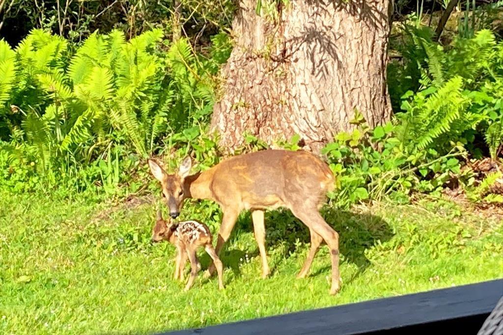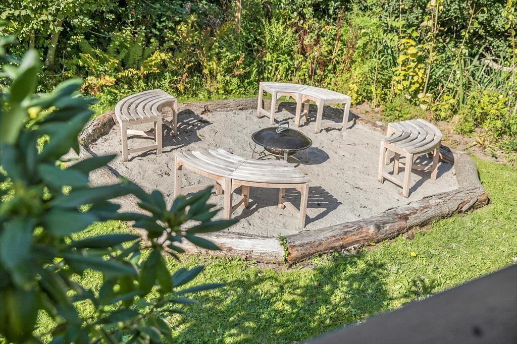 Sie wohnen auf einem 1.080 m² großen Grundstück mit einem ungestörten Garten. An das Haus schließt eine von einer Terrassenumrandung umgebene, teilweise überdachte Holzterrasse. Beim Hauseingang erwartet Sie darüber hinaus eine gepflasterte Terrasse, auf der Sie mit Morgensonne verwöhnt werden. Auf dem Grundstück und auf den Terrassen werden Sie sich bestens erholen und entspannen. Nicht selten beobachten Sie in den Morgen- und Abendstunden Rehe und Eichhörnchen. Gartenmöbel, Liegestühle, Sonnenschirme, ein Gasgrill und eine große Feuerstelle mit Bänken laden zu gemütlichen Stunden und geselligen Runden ein.