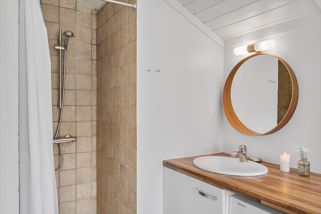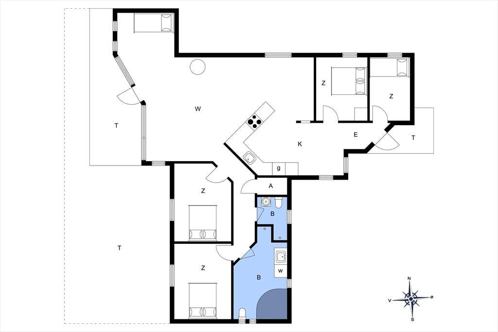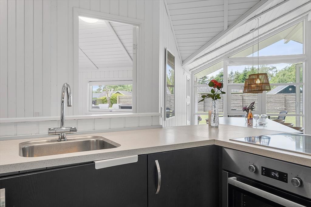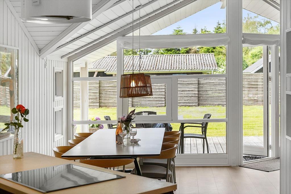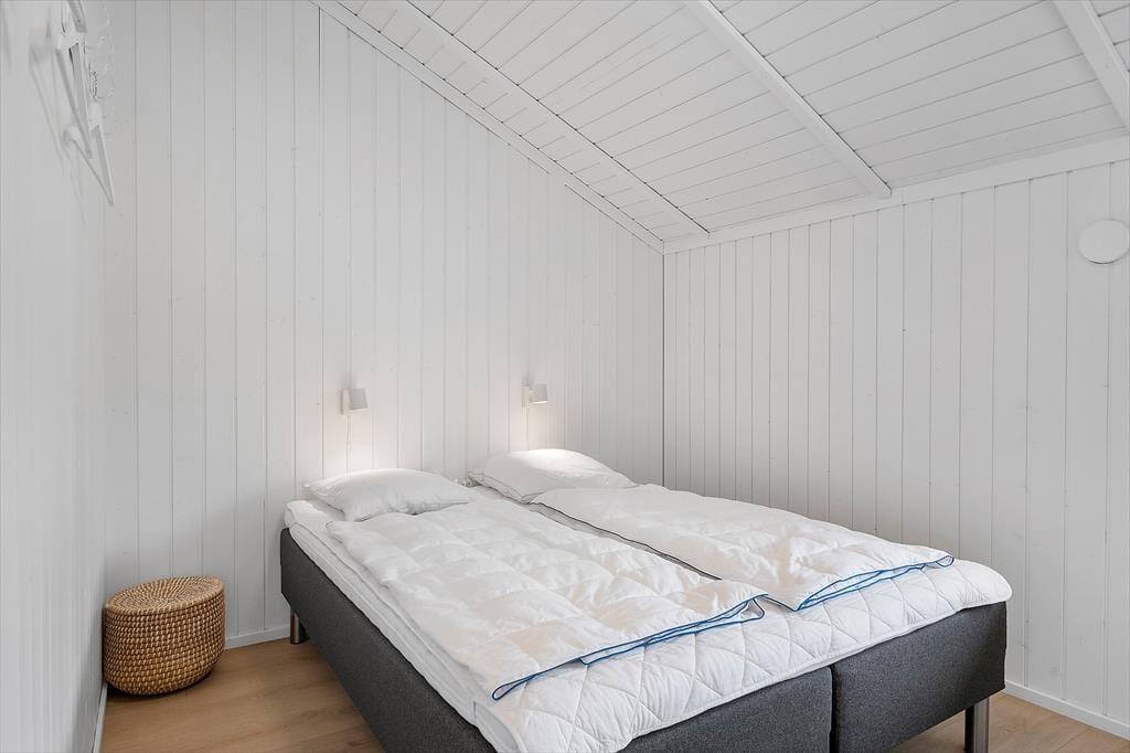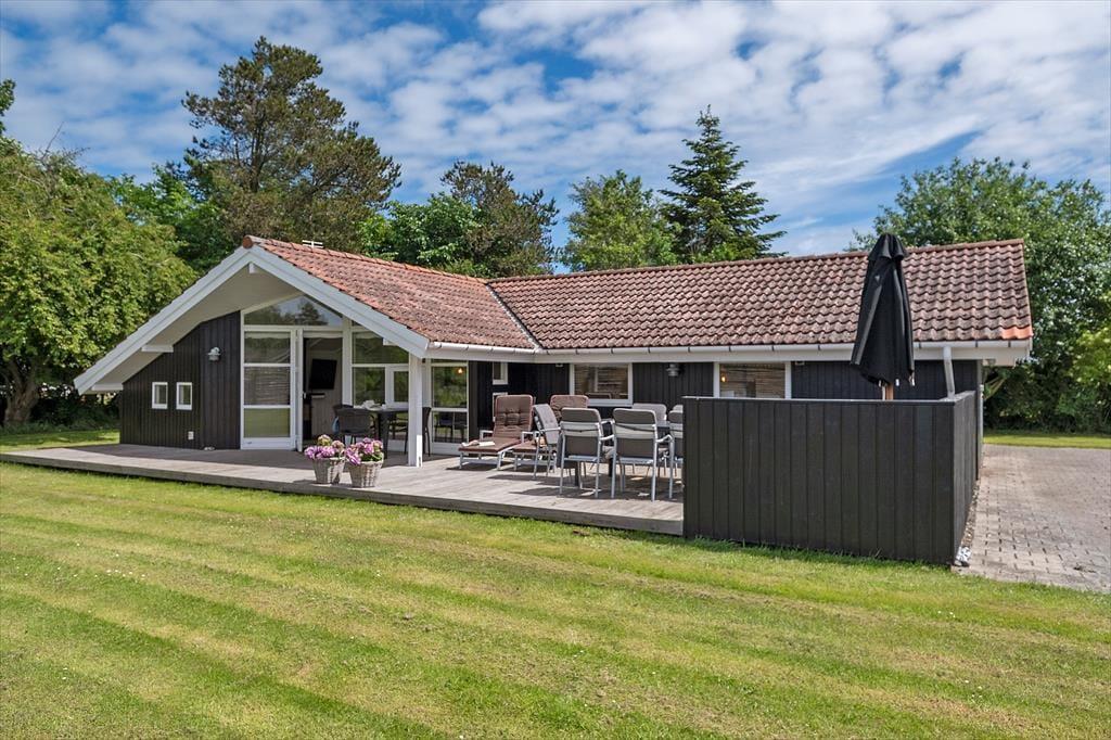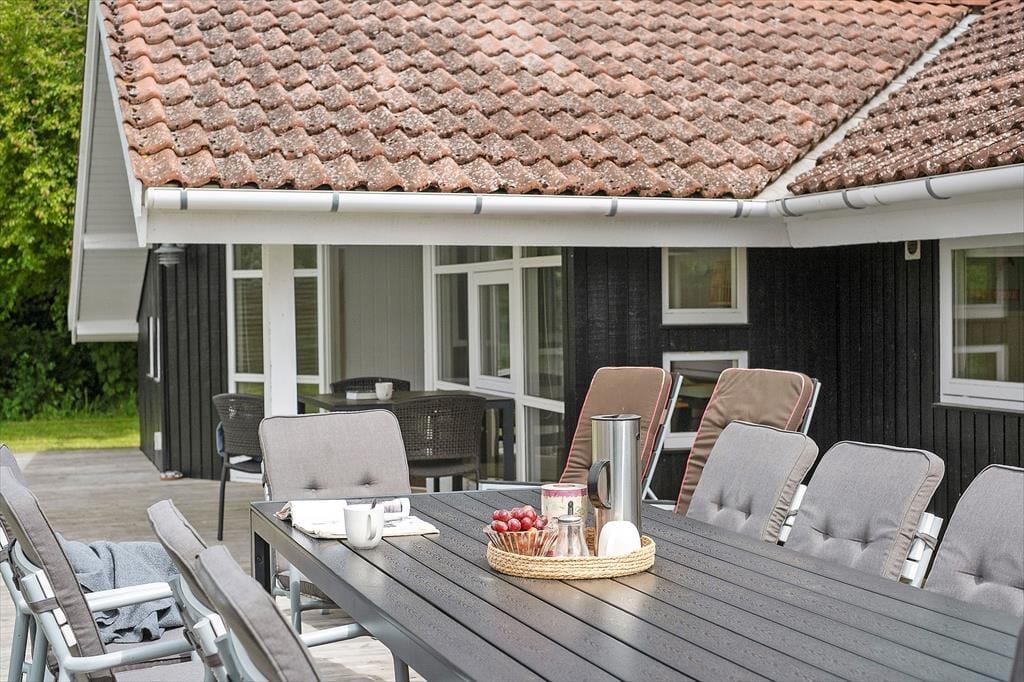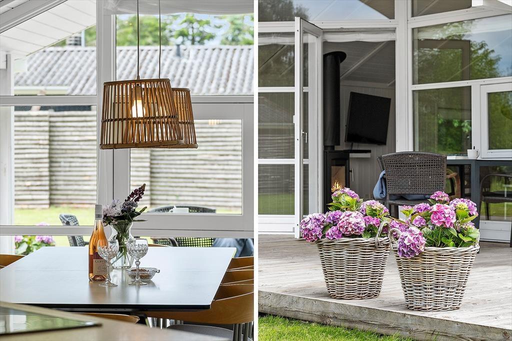 Das Ferienhaus, das 2023 renoviert wurde, ist gepflegt und gut eingerichtet. In allen Räumen gibt es hohe Decken. Die Küche ist in das Wohnzimmer integriert, modern und funktional eingerichtet mit Kochplatten, eingebautem Backofen, Dunstabzugshaube, Mikrowelle, Spülmaschine, Kühlschrank und Gefrierschrank. Im Wohnzimmer gibt es große Fensterfronten, die für viel Licht im Haus sorgen. Vom Wohnzimmer aus gelangst du auf eine teilweise überdachte Terrasse. Hier findest du einen großzügigen Essbereich, ein Ecksofa, einen Kaminofen, einen Fernseher mit dänischen Kanälen, eine Satellitenschüssel mit deutschen Kanälen und eine Chromecast Streaming-Möglichkeit (erfordert eigenen Login). Das Haus ist ausgestattet mit zwei Badezimmern mit Duschecke und Fußbodenheizung. Eines der Badezimmer verfügt außerdem über einen Whirlpool und eine Waschmaschine. Die vier Schlafzimmer sind alle mit Doppelbetten ausgestattet (zwei zusammengestellte Einzelbetten).