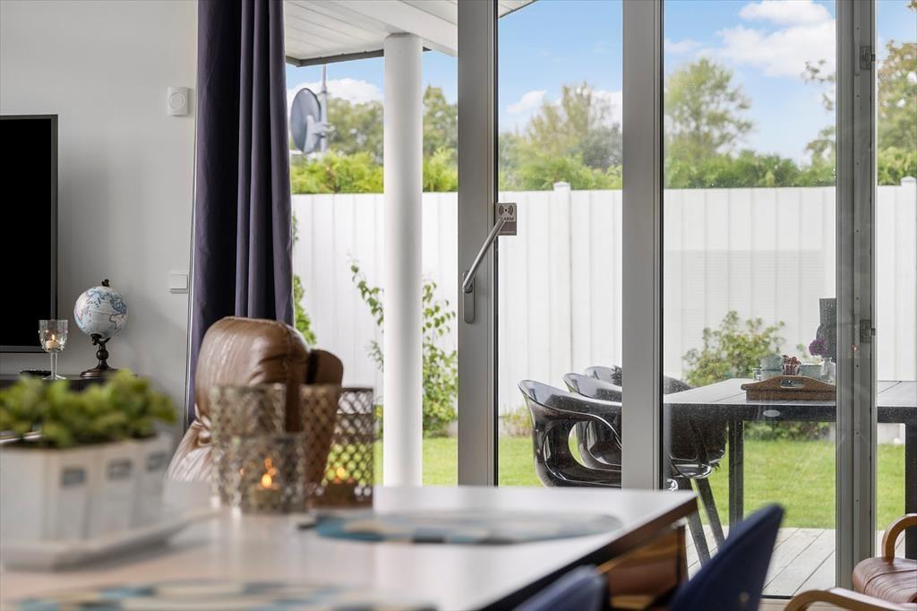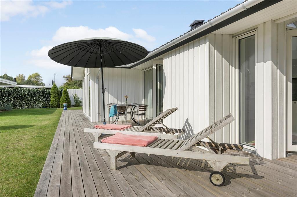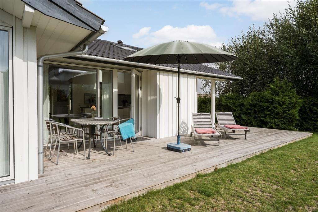 Genieße das Leben im Freien: Vom Wohnzimmer aus gibt es mehrere Ausgänge zur teilweise überdachten Holzterrasse. Entspannen Sie auf der Terrasse oder machen Sie ein kleines Nickerchen auf der Sonnenliege an der frischen Luft. Das Haus befindet sich auf einem schönen, abgeschirmten und uneinsehbaren Grundstück am Ende einer Sackgasse. Im Garten gibt es reichlich Gelegenheit für Aktivitäten und Spiel für die Kinder. Im Freien gibt es außerdem gute Möglichkeiten, unter freiem Himmel zu grillen oder einfach die entspannte Atmosphäre und die umgebende Natur zu genießen.