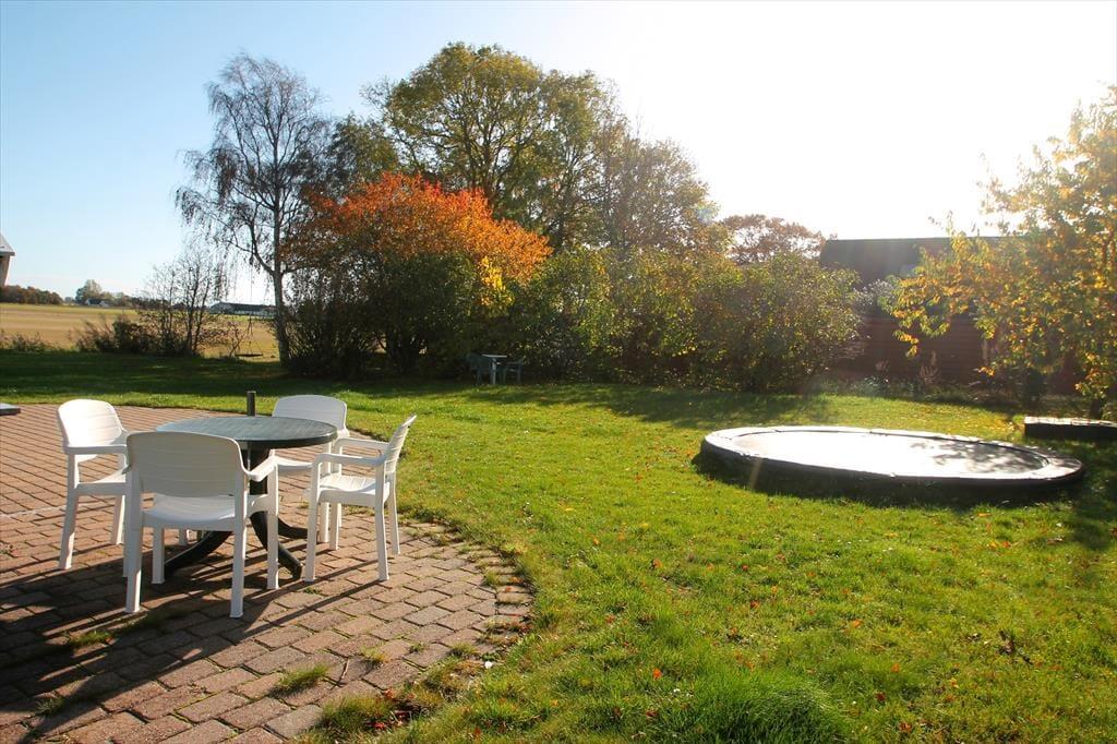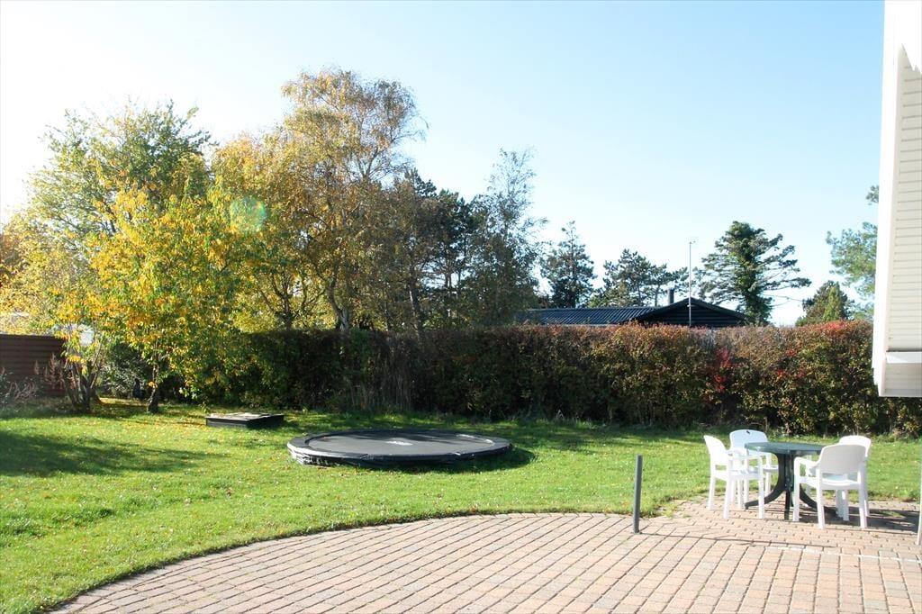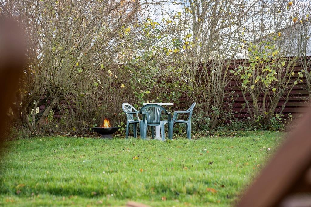 Genieße das Leben im Freien: Im Garten gibt es reichlich Platz für Spiele und Aktivitäten für die Kinder, da eine schöne Rasenfläche mit großem Trampolin und Sandkasten vorhanden ist. Rund um das Haus gibt es mehrere Terrassen, auf denen man die Sonne genießen, sich entspannen oder sich zu einem schönen Grillabend am Gartentisch versammeln kann. Der Terrassenbereich an der Eingangstür ist teilweise überdacht, sodass man hier morgens gemütlich eine Tasse Kaffee genießen kann. Genieße die Natur und den Blick auf die offenen Felder und die Landschaft ringsum. Das Haus liegt nur 500 Meter vom schönen Sandstrand entfernt, ideal für einen erfrischenden Abendspaziergang mit anschließendem Aufwärmen am Feuerkorb im Garten.