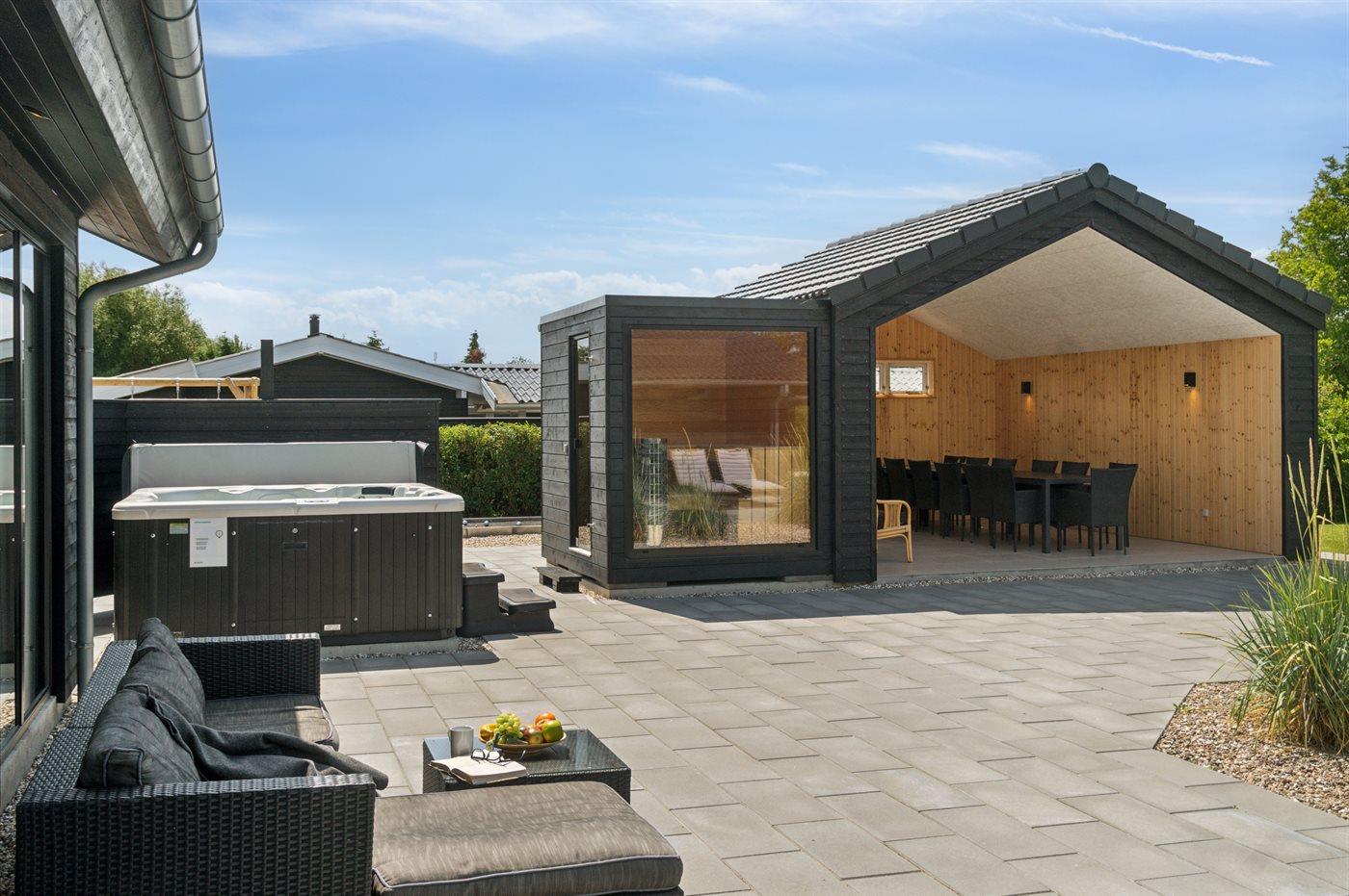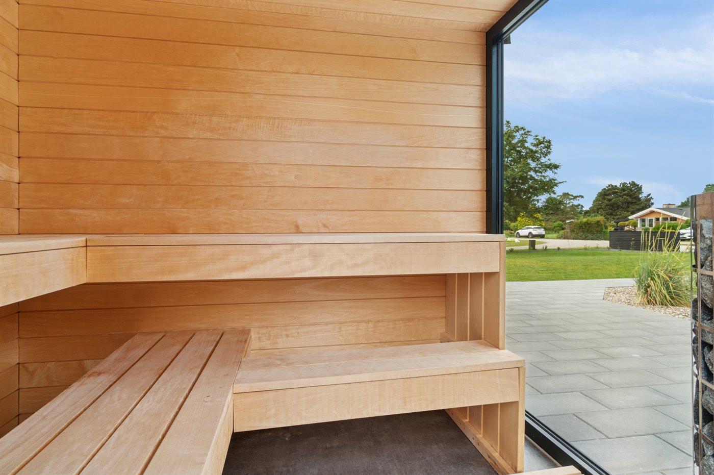 Luxus-Aktivitätshaus nahe Stillinge Strand mit Pool, Sauna, Whirlpool und großem Garten für unvergessliche Ferien.