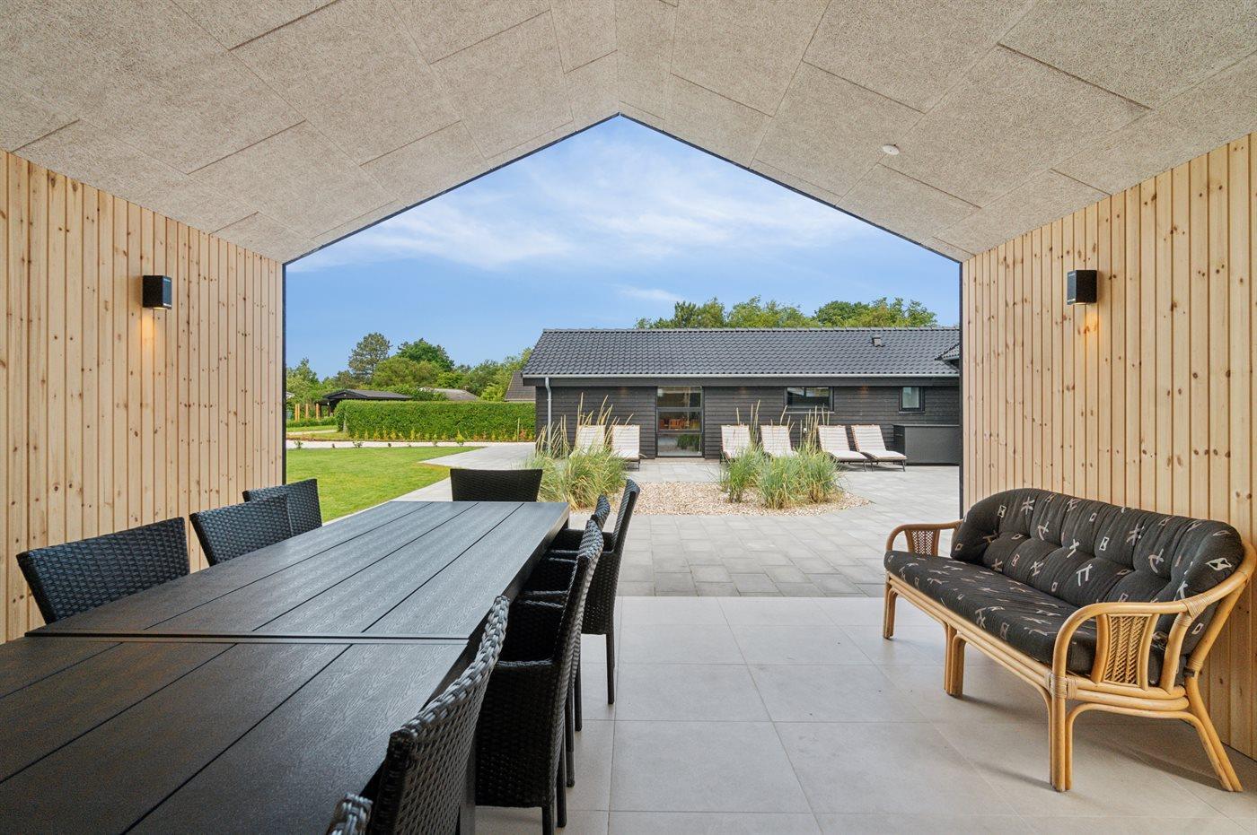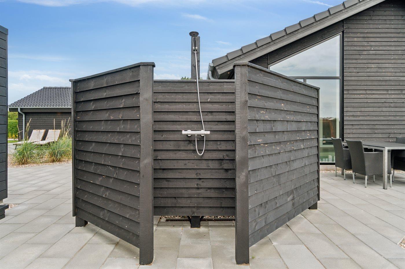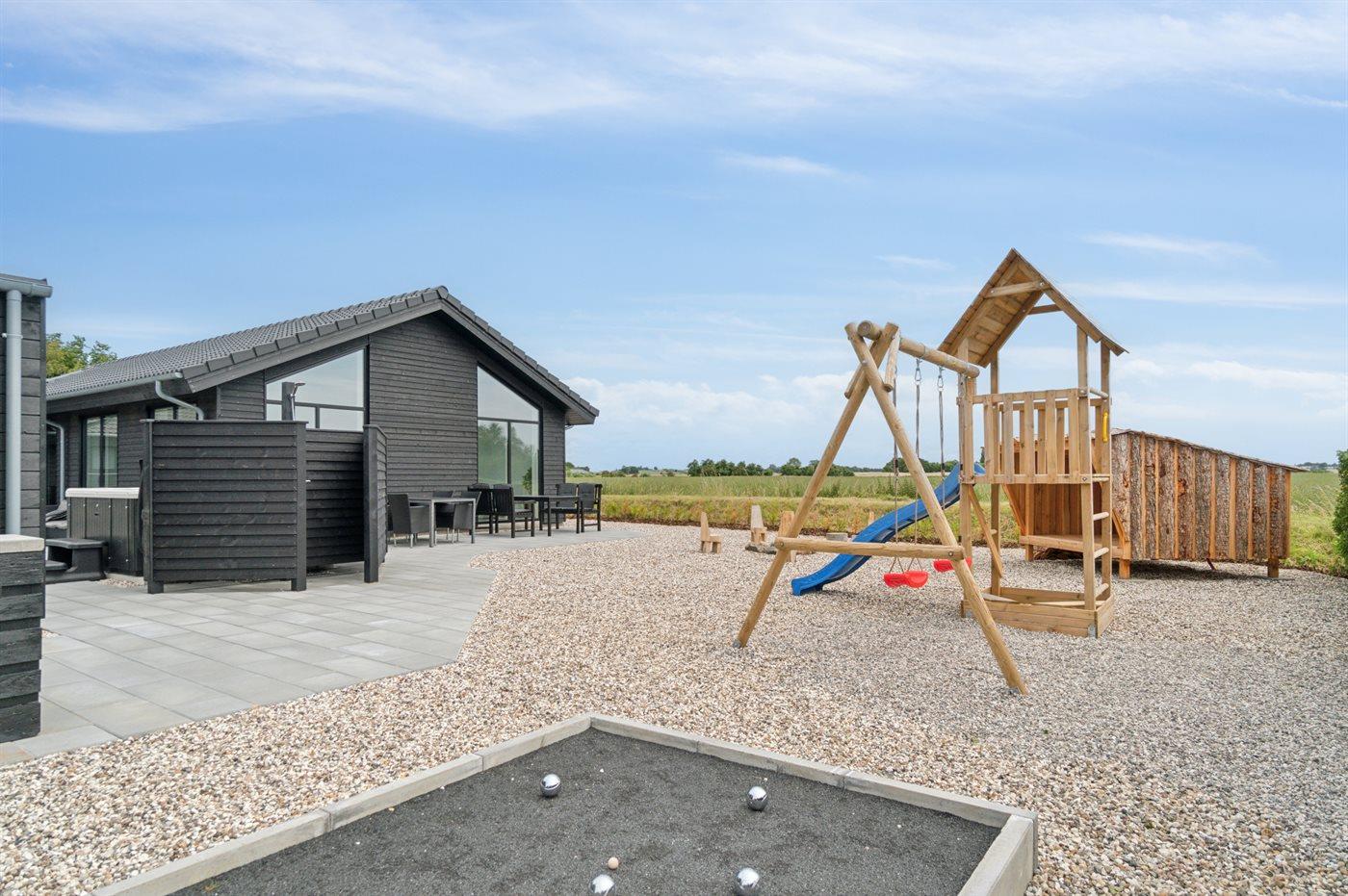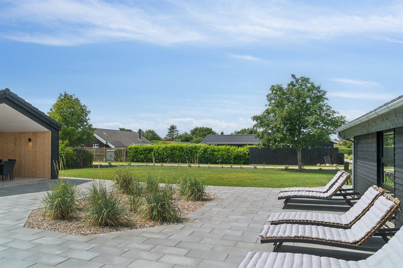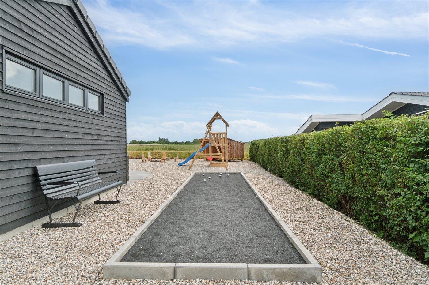 Die Ferienunterkunft liegt auf einem 1329 m² großen Gartengrundstück. Die Entfernung zum Meer beträgt 600 m. Die nächste Einkaufsmöglichkeit liegt 650 m entfernt. In einem Abstand von 12000 m gibt es einen Golfplatz. Es steht ein 125 m² Terrassenareal zur Verfügung. Außerdem gibt es 27 m² überdachte Terrasse. Schaukel. Sandkasten. Spielturm. Rutsche. Petanque. Lagerfeuerstelle. Windschutzhütte. Außensauna. Außendusche. Es steht ein Grill zur Verfügung. Es ist ein Ladestecker für Elektroautos installiert. Ladestecker Typ 2. Mit einer Ladeleistung von 11 kW. Parkplatz auf dem Grundstück.