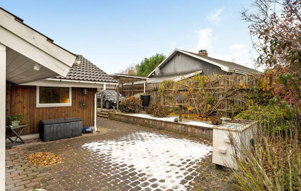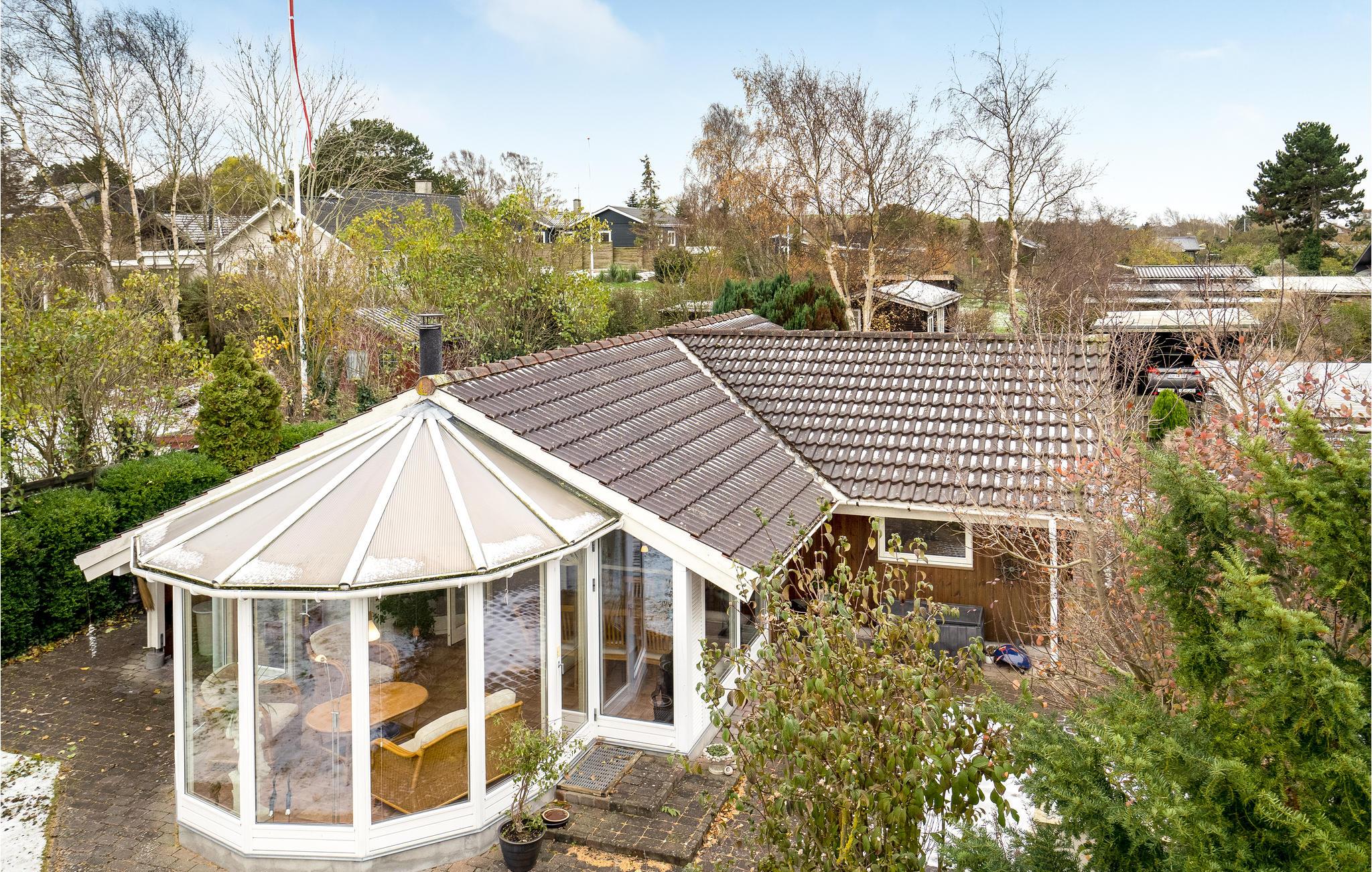 Gemütliches Ferienhaus mit Wintergarten und privatem Garten nahe dem kinderfreundlichen Sandstrand in Stillinge Strand, Dänemark.