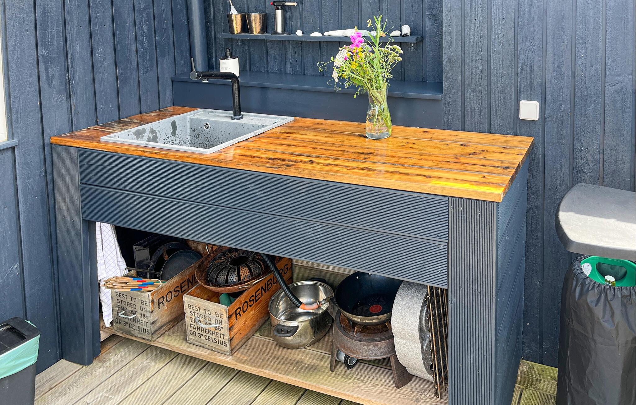 Modernes Ferienhaus nahe dem Meer mit finnischem Holzbad und Aktivitätsraum für Familienurlaub.