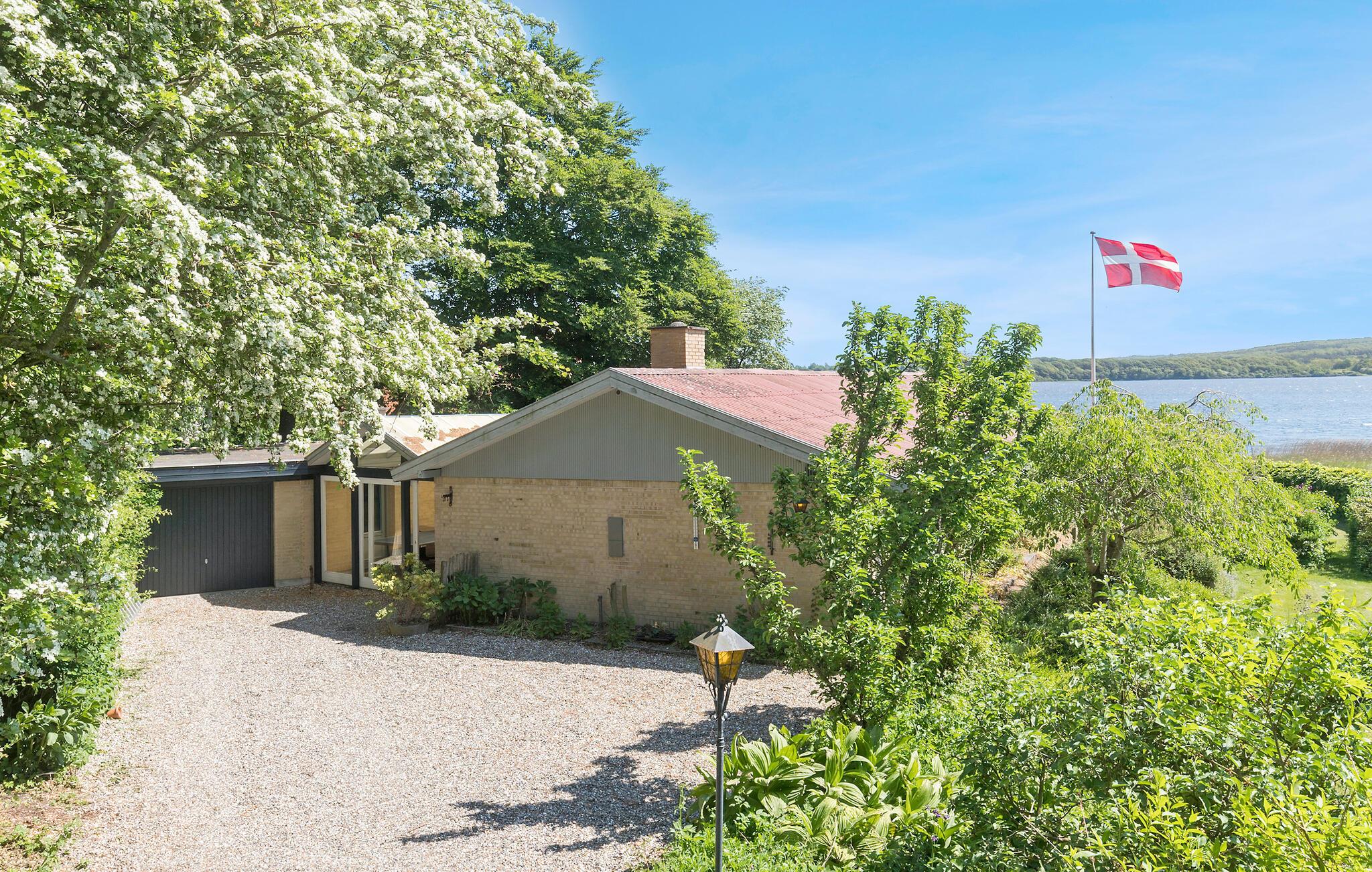 Erleben Sie ein einladendes Ferienhaus mit Wintergarten und eigenem Hafen in Stinesminde, Dänemark, für erholsame Tage am Mariager Fjord.