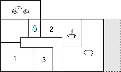 Schlafzimmer (nr. 3) - 1 Schlafmöglichkeit. (Einzelbett(en)). 2 Schlafmöglichkeiten. (Schlafsofa,Matratze,Sonstiges).