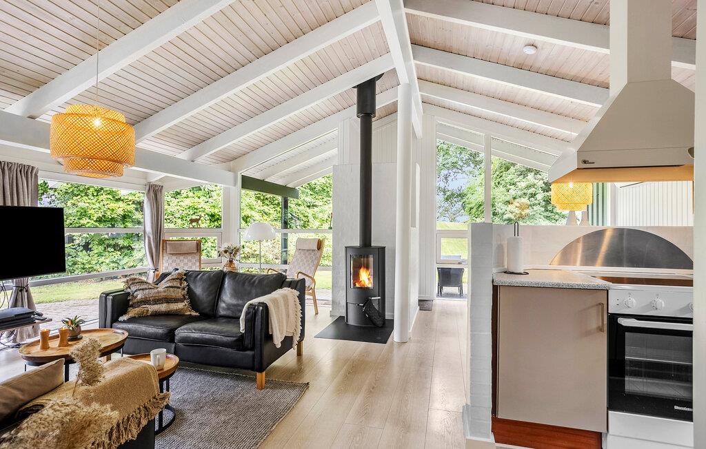 Das helle und funktionale Haus bietet Ihnen alles, was Sie für einen entspannten Aufenthalt benötigen. Der offene Wohn- und Essbereich lädt Sie zu gemeinsamen Stunden ein, während die großen Fenster einen wunderbaren Blick auf die Natur gewähren. Die teilüberdachte Terrasse ist der perfekte Ort, um die frische Luft zu genießen und den Tag mit einem Glas Wein ausklingen zu lassen. Auf der Anhöhe des Grundstücks haben Sie einen Panoramablick auf Tåsinge und Fünen, ebenfalls auf das Wasser. Angelfreunde werden die nahegelegenen Fischgründe nur 80 Meter vom Haus entfernt besonders schätzen.