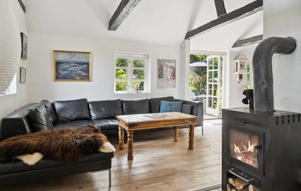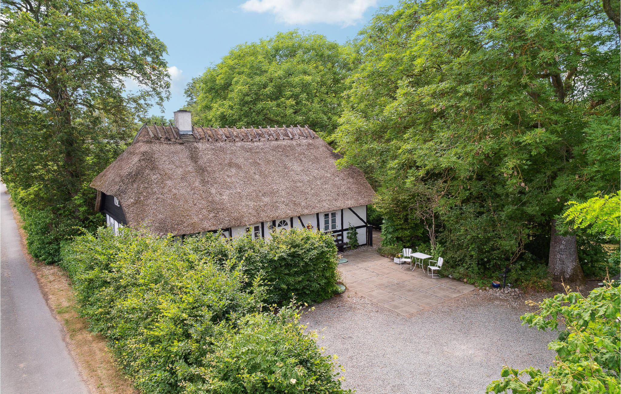 Idyllisches Fachwerkhaus in Stokkemarke mit Garten, Kaminofen und Pizzaofen für entspannte Ferien in Dänemark.
