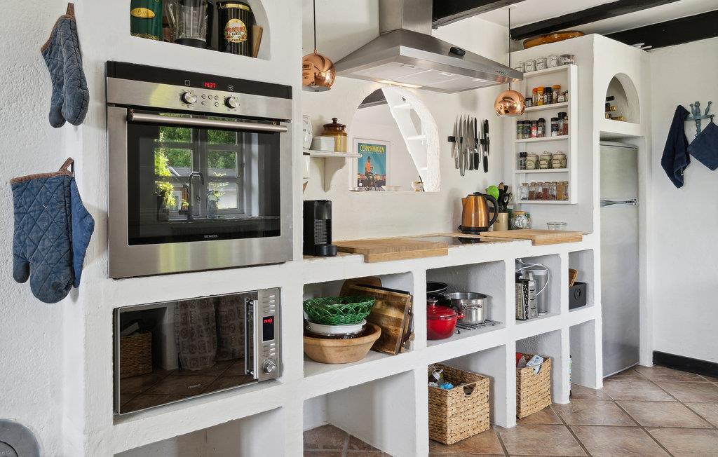 Hier herrscht Gemütlichkeit und die originellen Details wie die Balken und das Fachwerk schaffen eine authentische, ländliche Atmosphäre. Lehnen Sie sich zurück und genießen Sie den Urlaub vor dem Holzofen, lesen Sie ein gutes Buch im weichen Sessel oder genießen Sie einen Kaffee am Esstisch, während jemand in der offenen Küche kocht.
