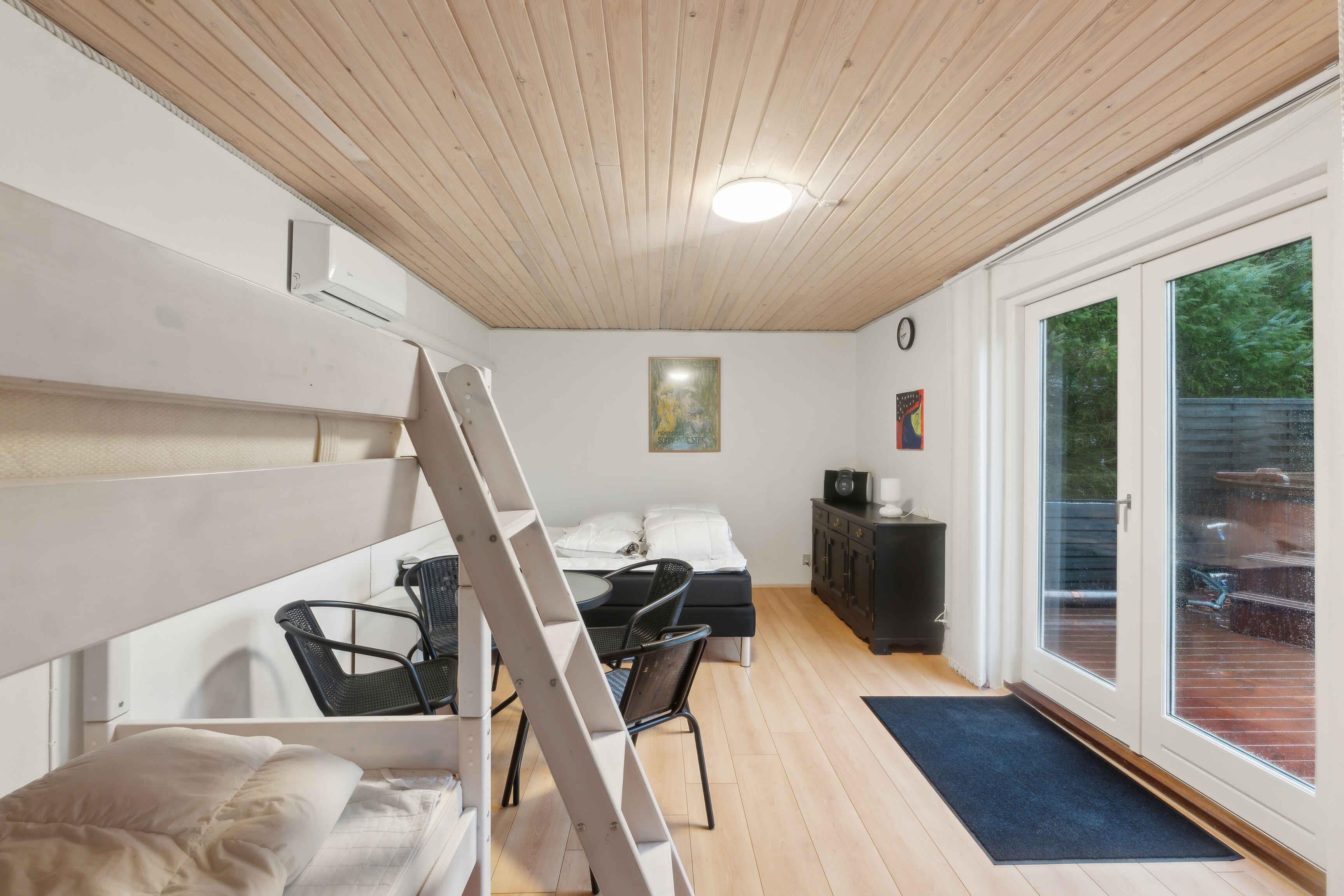 Dieses Ferienhaus von 119 m² ist ideal für einen Urlaub mit Familie oder Freunden. Das Haus verfügt über vier Schlafzimmer und bietet Platz für zehn Personen, verteilt auf Haupthaus und Anbau. Drei Schlafzimmer im Haupthaus sind mit Doppelbetten und Etagenbetten ausgestattet, während der Anbau ein Dreiviertelbett und ein Etagenbett bietet. Perfekt für flexible Unterbringung. Eine Wärmepumpe und ein Kamin sorgen das ganze Jahr über für eine angenehme Atmosphäre. Internet ist ebenfalls verfügbar, damit Sie während Ihres Aufenthalts verbunden bleiben. Das Freiluftbad und die Sauna im Garten bieten die Möglichkeit zur völligen Entspannung. Genießen Sie einen Abend unter den Sternen oder entspannen Sie sich nach einem Tag am Strand. Die Terrasse und der Garten des Hauses eignen sich perfekt für Mahlzeiten im Freien. Mit Grill, Essbereich und Whirlpool lassen sich gemütliche Urlaubsmomente schaffen. Das Haus liegt nur 1000 Meter vom Wasser entfernt. Der Strand am Hafen von Egense ist flach und familienfreundlich, mit einem Steg und sauberem Wasser. Egense bietet einen charmanten Hafen, von dem aus Sie die Fähre nach Hals nehmen können. Genießen Sie frischen Fisch, Eis und lokale Spezialitäten. Die Umgebung ist ruhig und malerisch, mit Wegen, die zu Spaziergängen und Fahrradtouren einladen. Die Küste ist ideal, um die schöne Landschaft Nordjütlands zu erkunden. Besuchen Sie Lille Vildmose, um Elche, Wildschweine, Bisons, Rotwild, Seeadler und Steinadler zu beobachten. Dieses Ferienhaus verbindet modernen Komfort, Naturerlebnisse und die Nähe zu einem der besten Strände Nordjütlands. Eine ideale Wahl für einen unvergesslichen Urlaub.