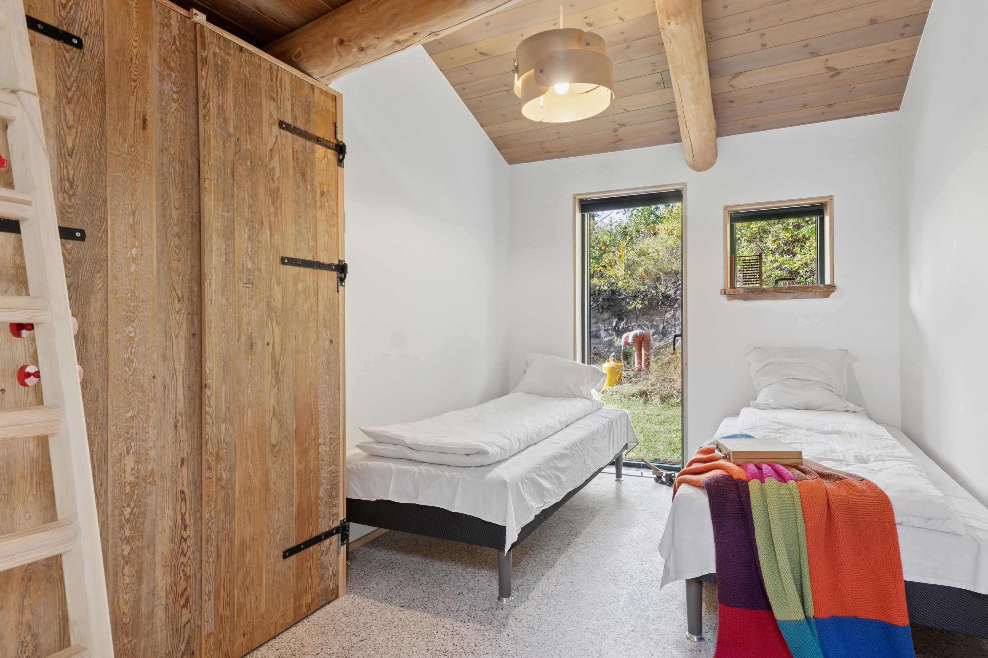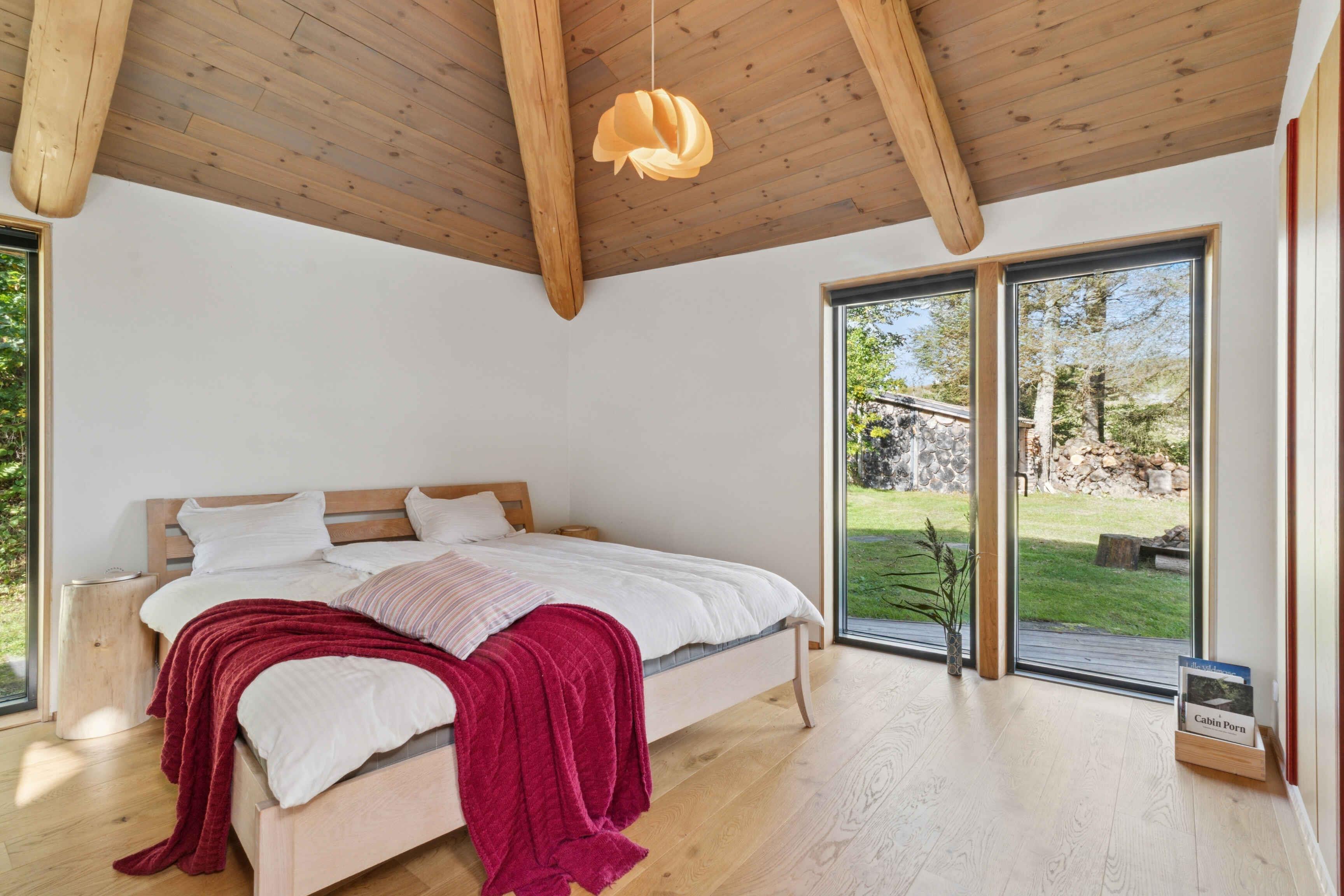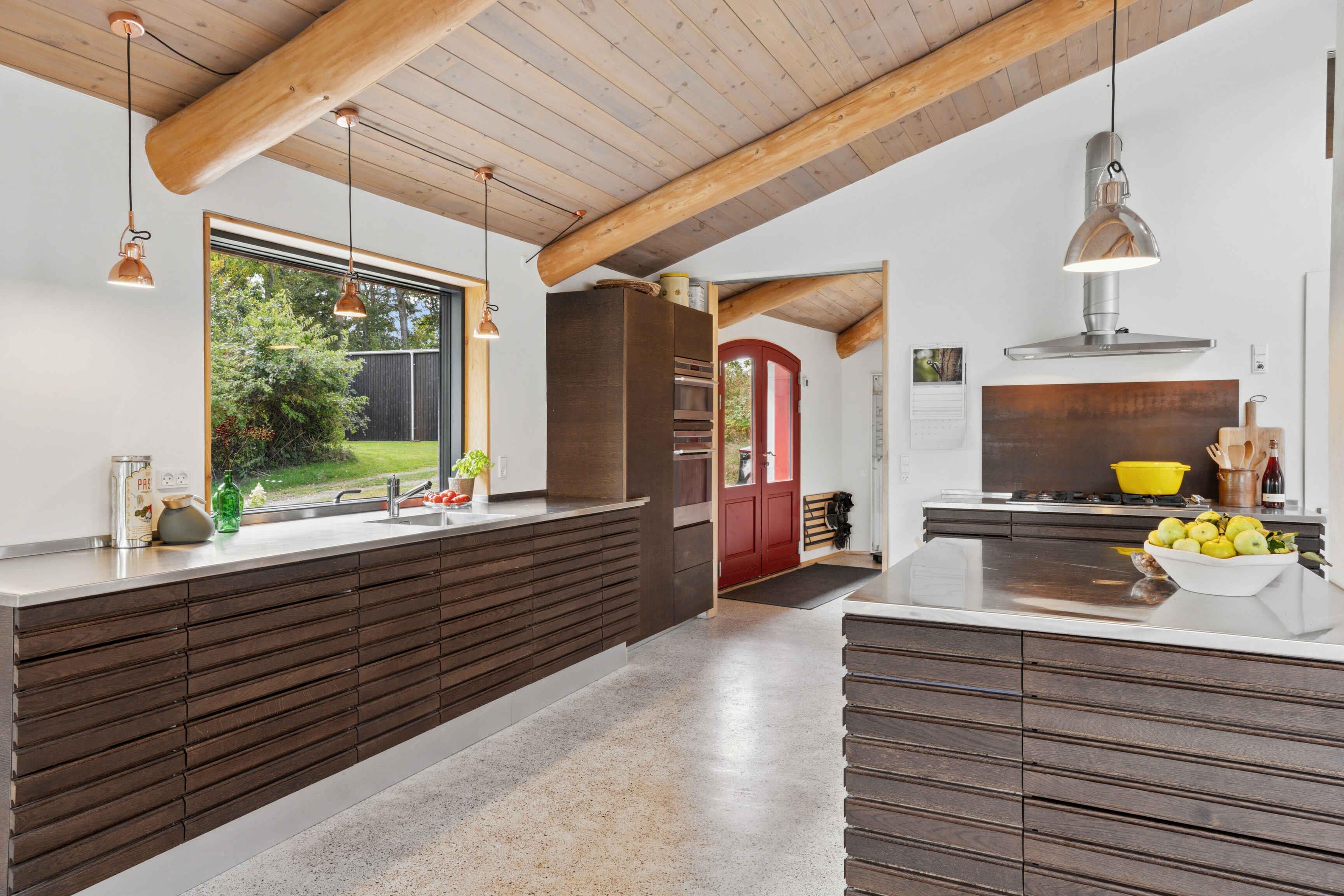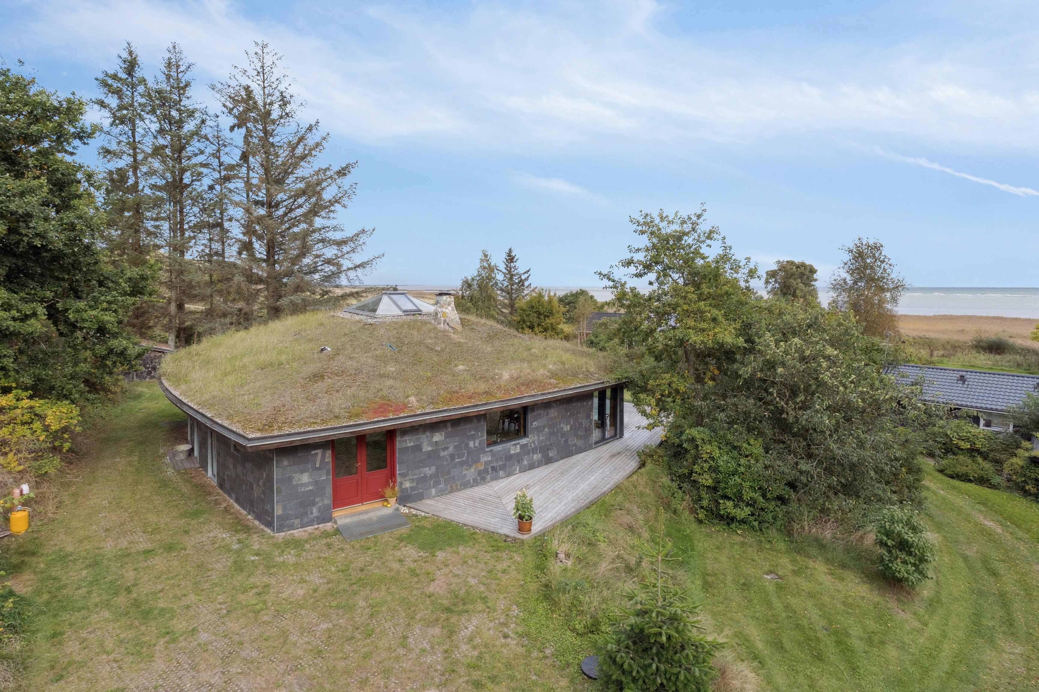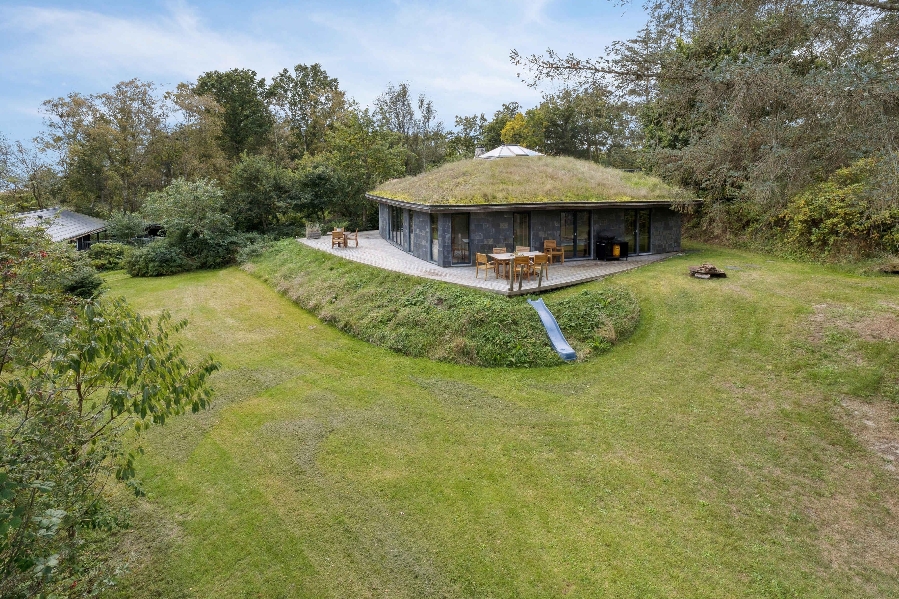 Schönes und großzügiges Ferienhaus aus Naturmaterialien auf einem ebenso schönen und ungestörten Naturgrundstück. Die Fassade ist mit elegant patiniertem Naturschiefer verkleidet. Das Dach ist mit Gras und Sedum begrünt, sodass sich das Haus harmonisch in die landschaftlich reizvolle Umgebung einfügt. Innen prägt die Rundstammkonstruktion die großen, hellen und freundlichen Räume. Das Haus ist von einer großen Terrasse mit Panoramablick über das Kattegat und die Muldbjerge umgeben. Vom Schuppen in der Ecke des Gartens führt ein kleiner Pfad zu einem herrlichen Aussichtspunkt oben auf dem Grundstück. Das Grundstück ist seit 30 Jahren im Familienbesitz. Das Haus wurde von Vater und Sohn neu gebaut und 2025 fertiggestellt. Das Haus liegt direkt an den Muldbjerge, die zu wunderschönen Spaziergängen einladen. Manche nutzen die Hügel auch zum Paragliding. Am kleinen Steg an der Teglvej (200 m vom Haus) gibt es gute Möglichkeiten, Seekajaks, Paddleboards und Windsurfer zu Wasser zu lassen. Zwei Paddleboards mit Handpumpe, Schwimmwesten und Paddel stehen im Schuppen kostenlos zur Verfügung. In fußläufiger Entfernung befindet sich der Steg in Dokkedal, wo man gut baden und Krabben fangen kann. Wir haben selbst die großen Sandbänke beim Steg immer zum Schwimmen und Sandburgenbauen genutzt. Das Ferienhaus liegt in Fahrradentfernung (5 km) zur Lille Vildmose, einem großen, geschützten Wildnisgebiet mit reichem und einzigartigem Tierleben. Jeweils 10 km südlich und nördlich liegen Øster Hurup und Hals, zwei Orte mit lebhaftem Stadt- und Hafenleben im Sommer. Aalborg ist nur 30 Autominuten entfernt und bietet zahlreiche Kultur- und Einkaufsmöglichkeiten.