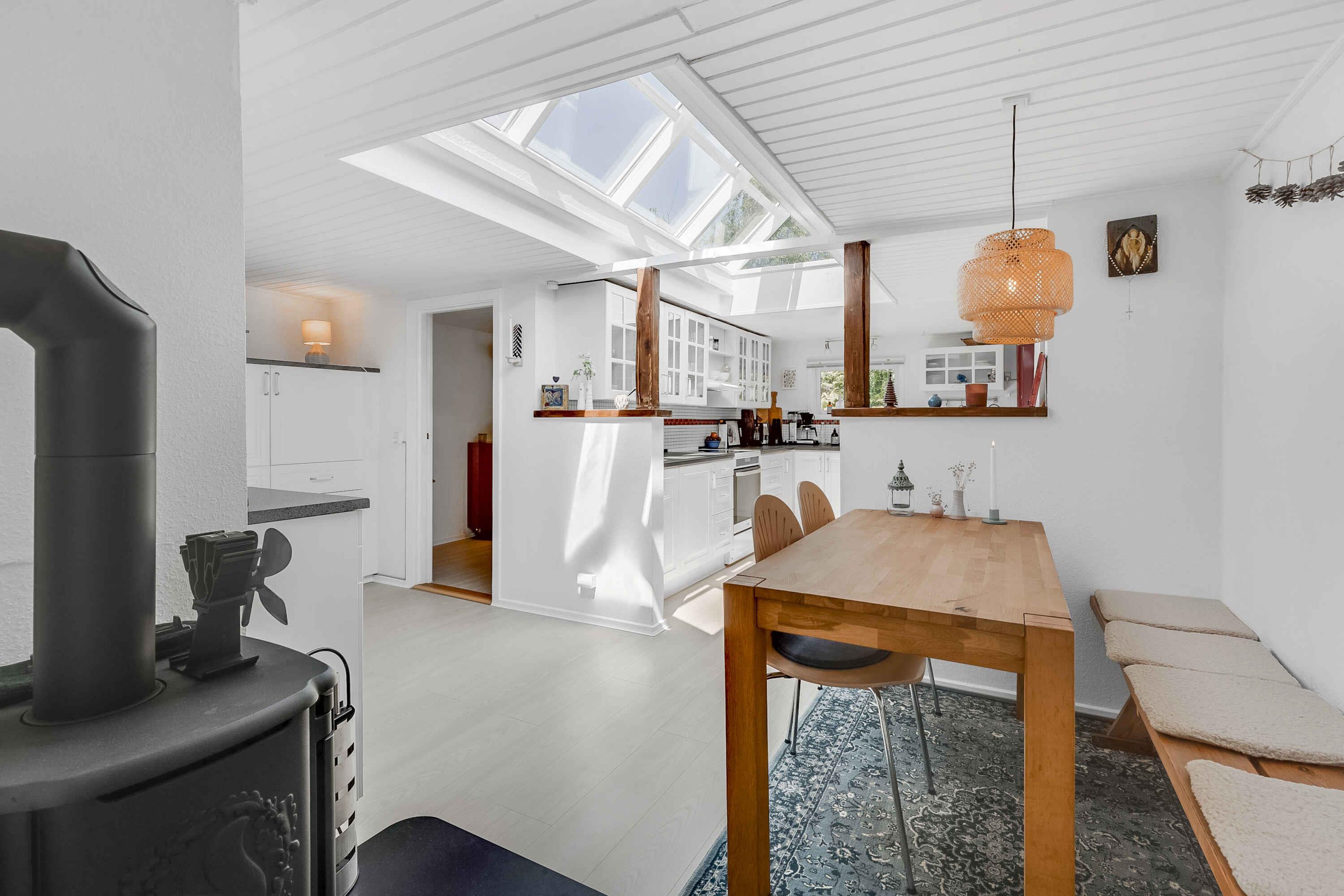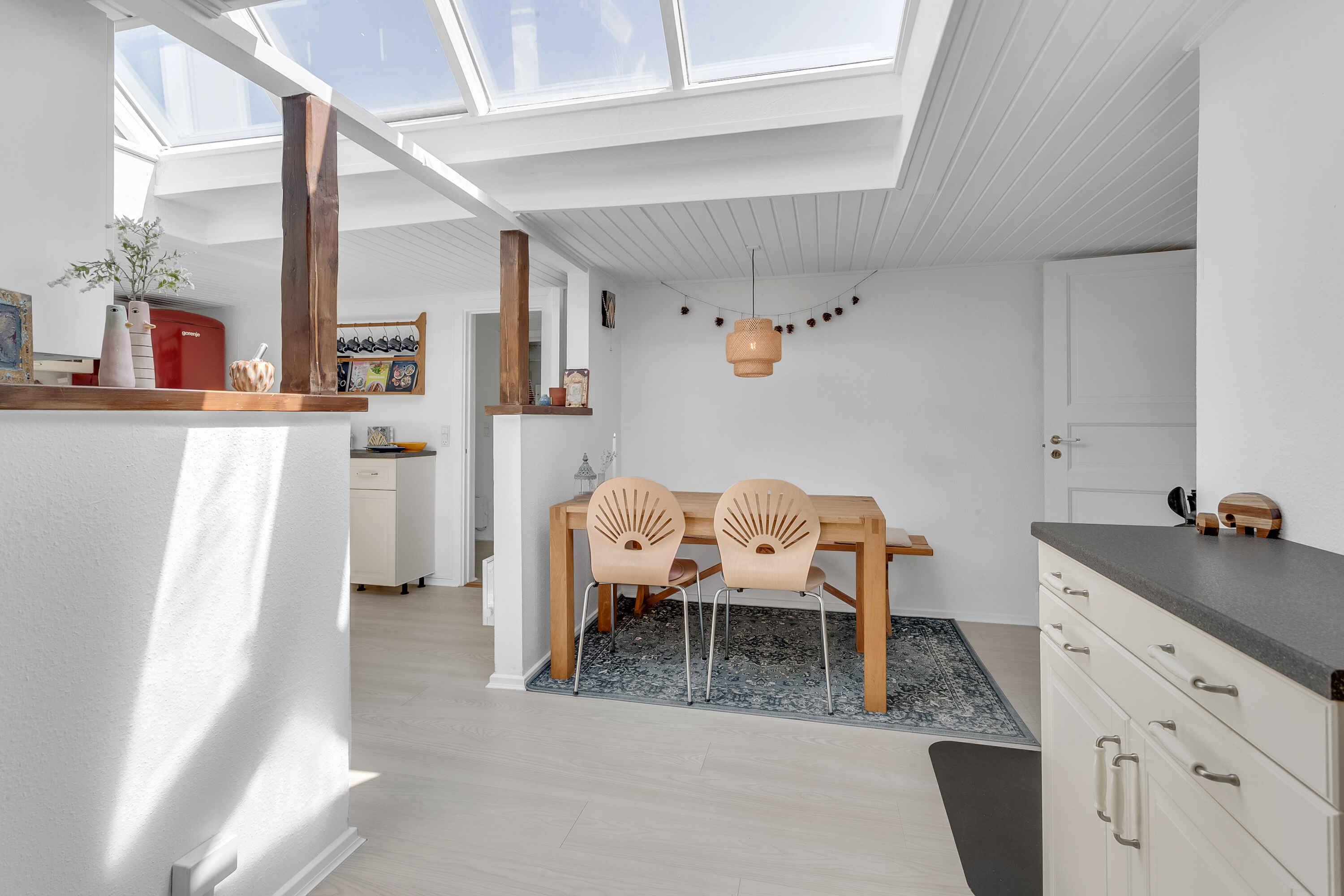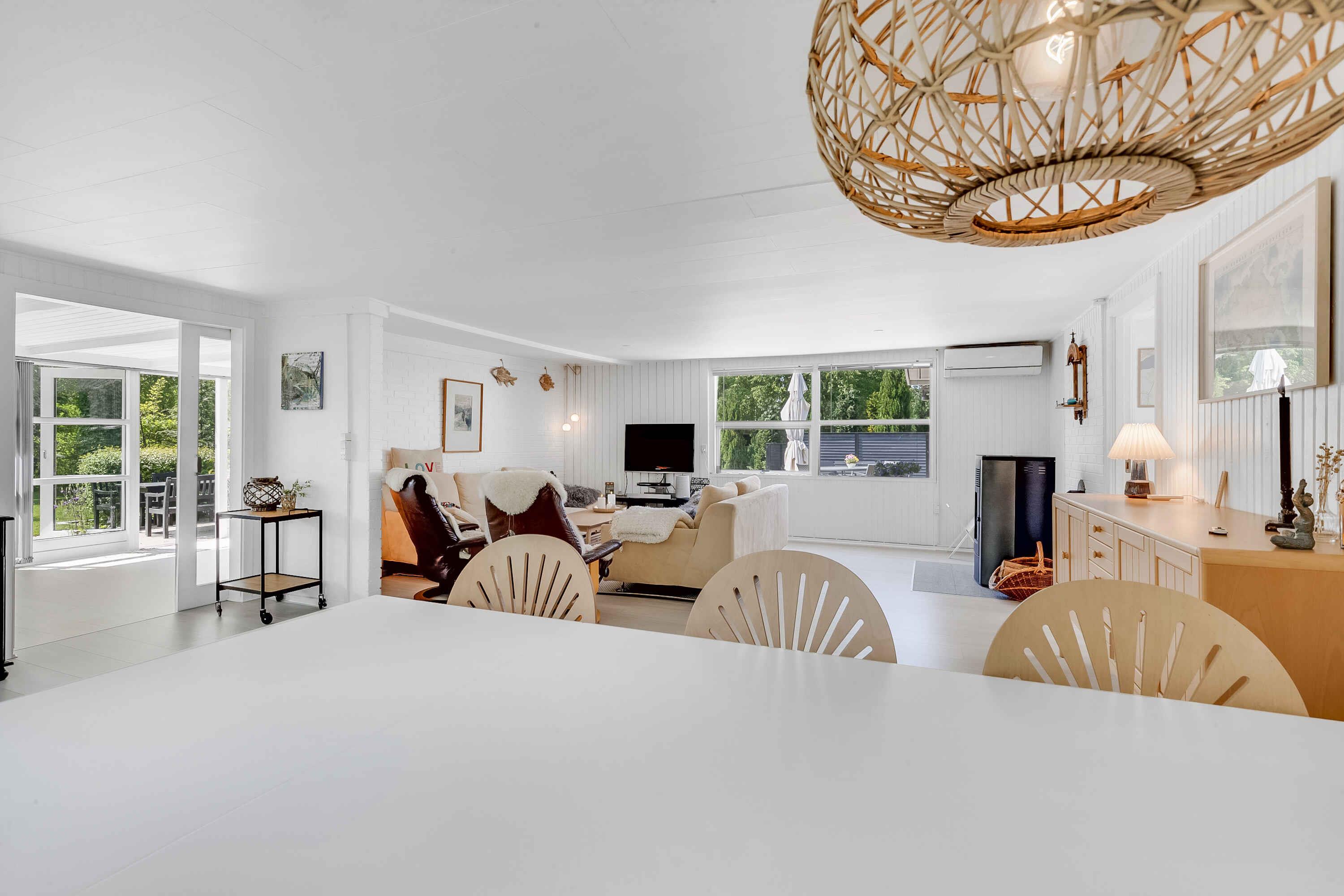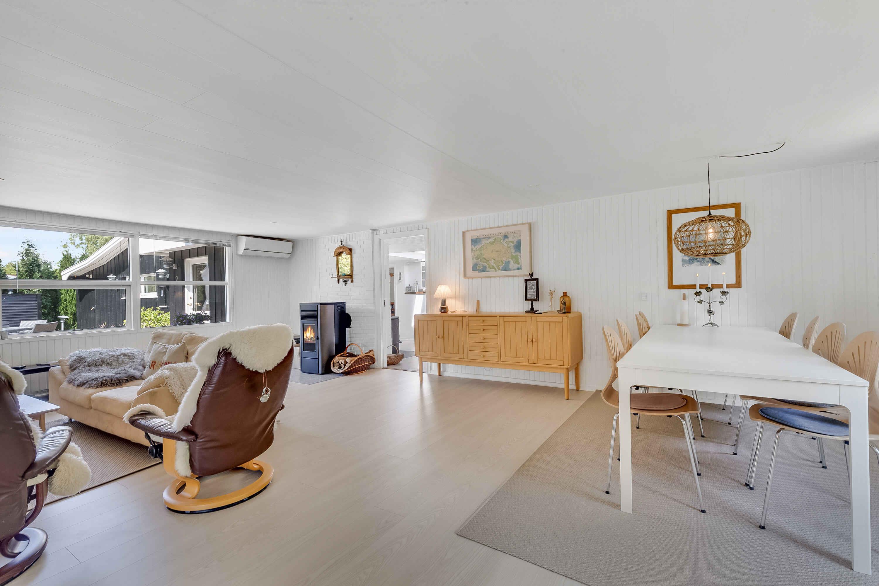 Wir finden, dieses fantastische, große und einzigartige Ferienhaus ist ideal, mit Platz für Ruhe und Geselligkeit. Der Garten ist komplett privat und eingezäunt, und das Haus liegt am Ende einer Sackgasse – absolute Ruhe ist garantiert. Das Ferienhaus ist 178 m² groß, mit 4 Schlafzimmern und 7 Schlafplätzen. Es gibt 3 Essbereiche: in der Küche, im Wohnzimmer und im Wintergarten. Die Tische lassen sich ausziehen, sodass bis zu 10 Personen Platz finden. Eine Ladestation für Elektroautos ist vorhanden (Typ 2, 11 und 22 kWh). Das Haus verfügt über Glasfaser und WLAN. Im Wohnzimmer steht ein Chromecast-TV: Bringen Sie Ihre Zugangsdaten (z. B. von YouSee oder Ihrem Anbieter) mit, um Ihre Lieblingssendungen zu sehen. In der Küche sorgt ein kleiner Holzofen für Gemütlichkeit. Im Wohnzimmer gibt es außerdem einen Pelletofen und eine Wärmepumpe. Eine weitere Wärmepumpe befindet sich im Hauswirtschaftsraum, dazu elektrische Heizkörper. Im Außenbereich gibt es einen Elektrogrill, sodass Sie auch bei Regen grillen können. Zur Ausstattung gehören ein großer Gefrierschrank, Kühlschrank, Mocca Master Kaffeemaschine, French Press, Mikrowelle und Backofen. Als Gastgeber möchten wir unseren Gästen das bestmögliche Erlebnis bieten und stehen Tag und Nacht für Fragen zur Verfügung. Egense ist eine wunderbare Region, sehr zu empfehlen! Neben kinderfreundlichen Stränden und der Nähe zu Aalborg gibt es auch viele Yachthäfen in der Umgebung zu entdecken. Ein guter Kaufmann befindet sich ca. 400 Meter entfernt, weitere Einkaufsmöglichkeiten gibt es in Hals, Storvorde und Mou. Der Fjordsporet-Weg führt von Mou Bro bis zum Hafen von Egense. Fast die ganze Strecke nach Aalborg kann man auf einem Radweg fahren! Nehmen Sie auch die Fähre nach Hals und genießen Sie eines der schönen Restaurants. Øster Hurup mit seinem lebhaften Ferienhausleben ist nur 18 km entfernt. Die herrliche Natur Osthimmerlands wartet: Von Egense aus sind Sie nah an Lille Vildmose und dem Høstemark Wald. Schöne Familienausflüge führen nach Dokkedal, Mulbjergene oder ins Lille Vildmosecenter, wo Sie Elche, Seeadler, Wildschweine, seltene Insekten oder Bisons beobachten können. Jugendgruppen nehmen wir leider nicht auf. Bettwäsche, Handtücher, Geschirrtücher usw. sind selbst mitzubringen. Willkommen! Tine und Peter