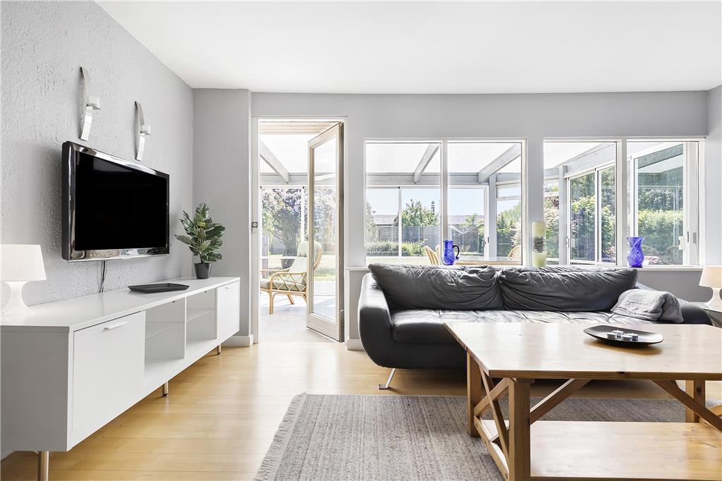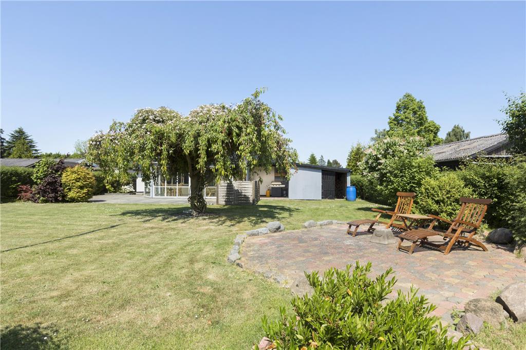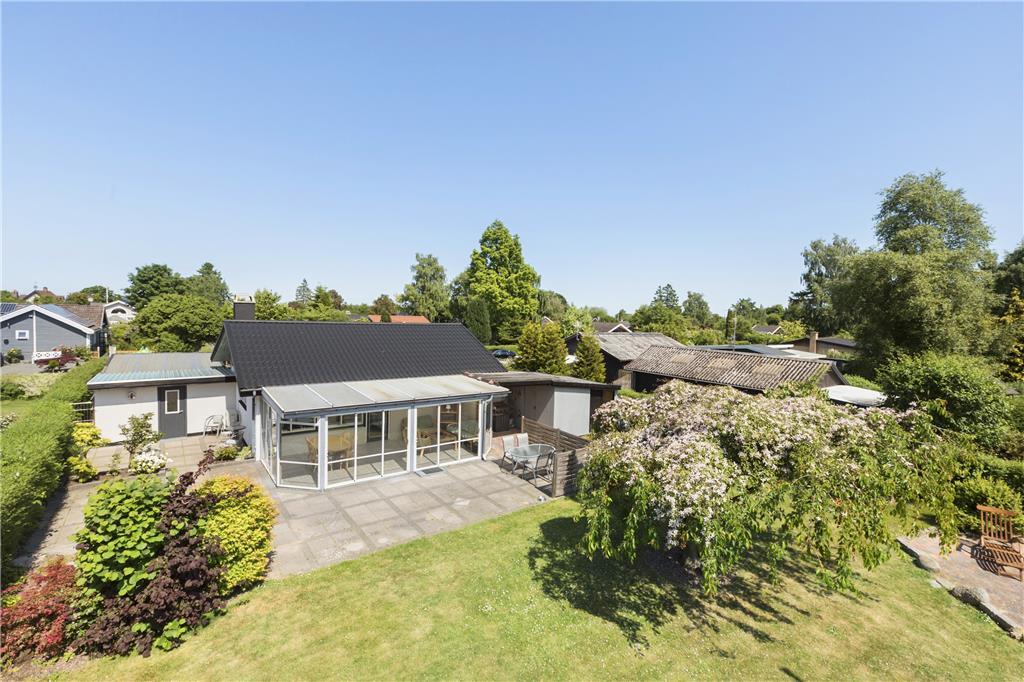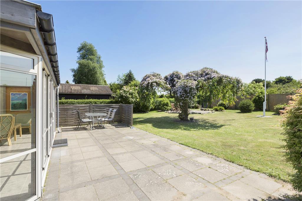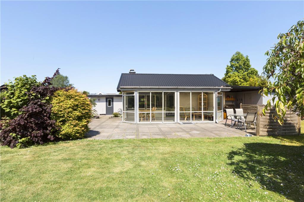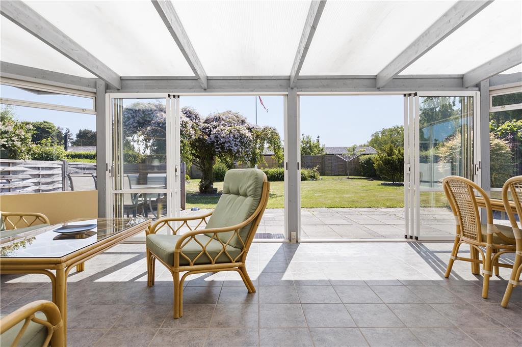 Draußen erwartet Sie ein großer, schöner und umzäunter Garten mit mehreren gemütlichen Sitzgelegenheiten und Gartenmöbeln. Hier können Sie die Sonne und die Natur in ruhiger Umgebung genießen. Vom Wintergarten aus gelangen Sie direkt auf eine geflieste Terrasse, die zu langen Sommerabenden mit Grillen, gutem Essen und gemütlichen Treffen einlädt.