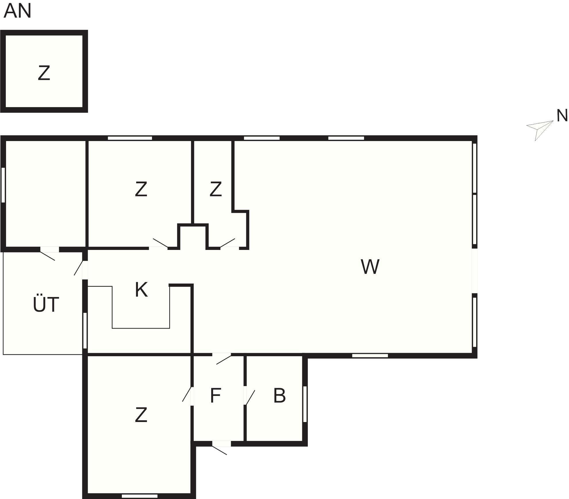 Zum Ferienhaus gehört außerdem ein separater Annex mit zwei weiteren Einzelbetten, die auch als Doppelbett genutzt werden können.