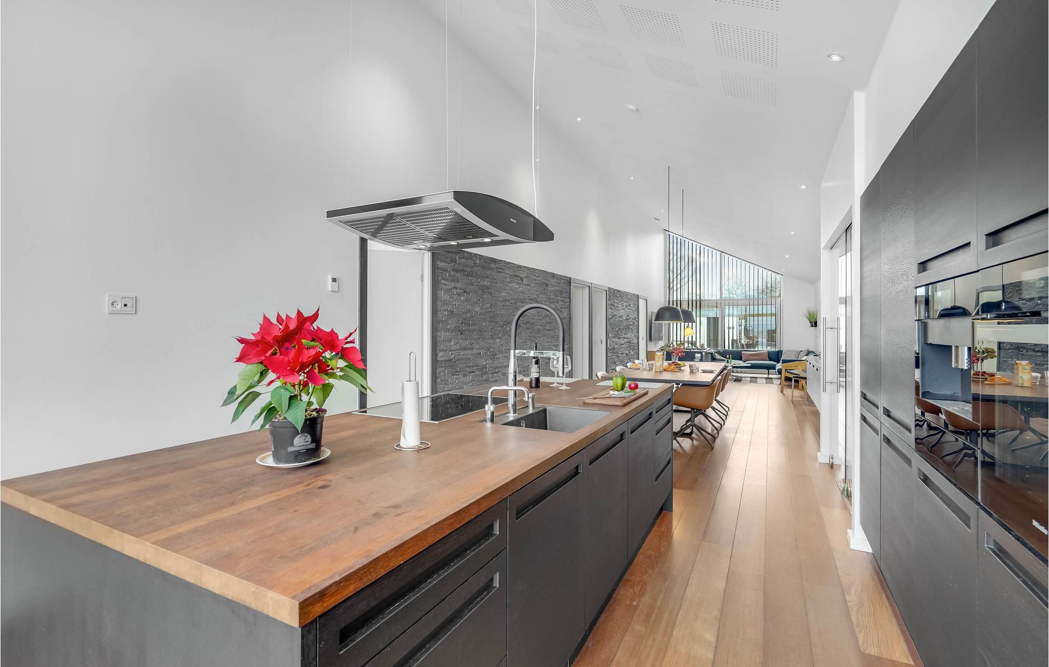In der ersten Reihe zur Bucht von Køge liegt dieses wunderschöne Ferienhaus. Das Haus ist aus den besten Materialien gebaut. Hier haben Sie einen schönen Blick auf das Wasser vom Wohnzimmer, der Küche und dem Schlafzimmer. Draußen finden Sie eine große, schöne Terrasse mit Außenpool und guten Gartenmöbeln. Hier können Sie ungestört die langen Sommerabende genießen und sich im beheizten Pool erfrischen. Die Küche ist mit allem ausgestattet, was man an modernen Küchengeräten braucht. Das Wohnzimmer ist mit modernen Möbeln eingerichtet und von hier aus haben Sie Zugang zur Terrasse. Der Annex im Hinterhof enthält 2 separate Schlafzimmer und ein Badezimmer. Es gibt außerdem 2 Badezimmer im Haupthaus, in denen sich eine Badewanne und ein Fernseher befinden. Ein wirklich schönes Haus, in dem an alles gedacht wurde. Der Pool ist von April bis Ende Oktober verfügbar.
