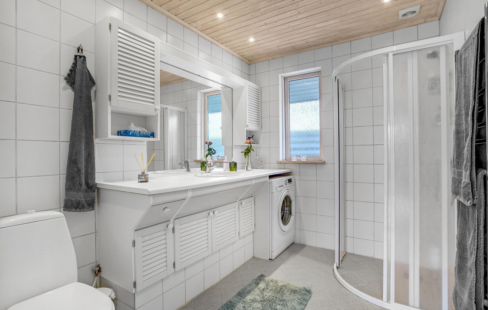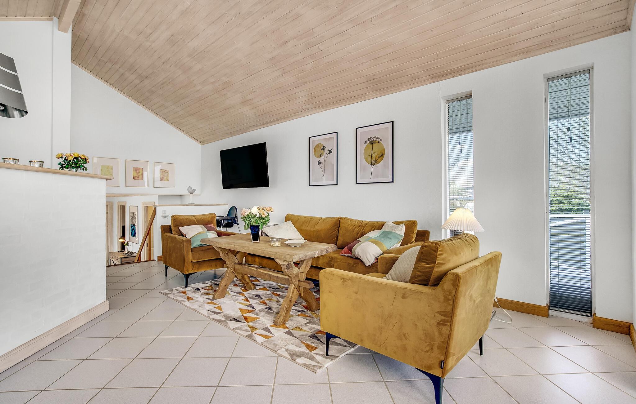 Willkommen in diesem Panoramahaus, das Sie mit seiner Aussicht begeistern wird. Das Haus befindet sich auf einem Grundstück in 1. Reihe zum Wasser und ist gemütlich mit schöner Dekoration eingerichtet. Das Herz des Hauses ist der helle Wohnbereich mit offener Küche, Sofaecke und Essplatz, wo Sie entspannte Urlaubstage mit der Familie beim Essen oder Lesen verbringen können. Ihnen stehen außerdem ein Badezimmer und 3 Schlafzimmer zur Verfügung, von denen sich eines im Annex befindet. Der Aktivitätskeller bietet mit Billard und Tischfußball gute Unterhaltung.