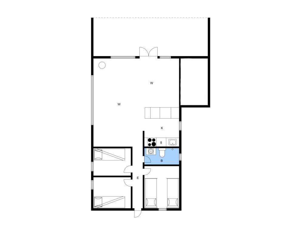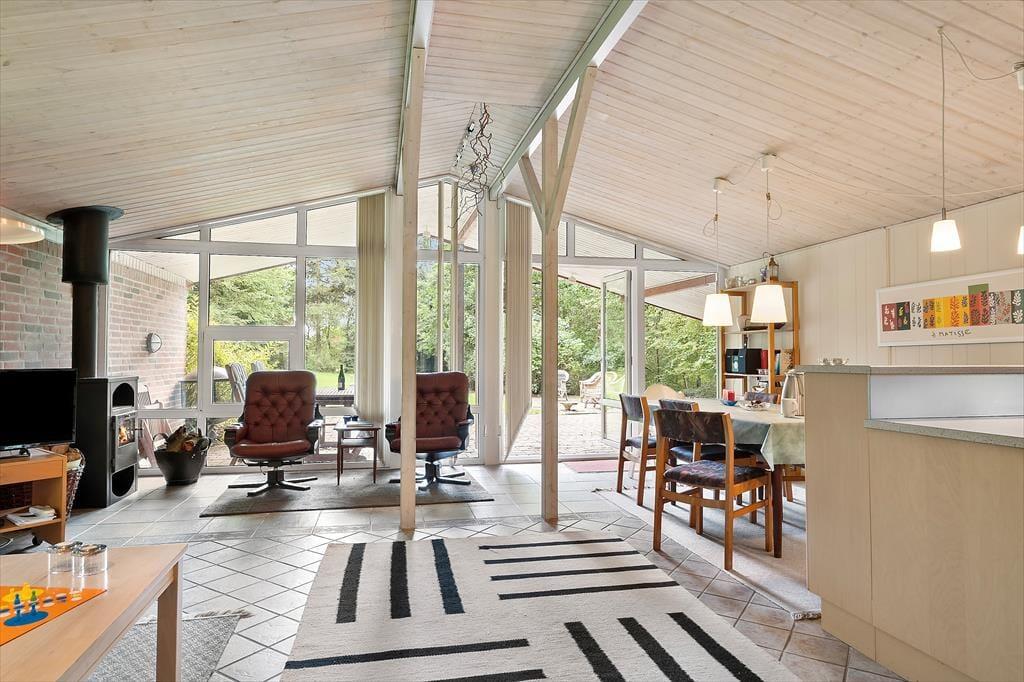 Dank der guten Raumaufteilung und der funktionellen Einrichtung beherbergt dieses Urlaubsdomizil bis zu vier Erwachsene und zwei Kinder. Zwei der Schlafräume beinhalten jeweils ein Etagenbett. Im dritten Schlafraum stehen zwei Einzelbetten bereit. Das Badezimmer verfügt über eine Dusche. In der Küche, die offen in den Wohnraum integriert ist, bereiten Sie problemlos die täglichen Mahlzeiten zu. An kühlen Tagen nutzen Sie die Wärmepumpe und den Kaminofen, der Ihre geselligen Runden am Esstisch gemütlich untermalt. Im Sommer verwöhnt die Wärmpumpe mit ihrer zusätzlichen Kühlfunktion. Selbstverständlich können Sie auch einfach die Terrassentüren weit aufstellen und die frische Luft durch das Haus ziehen lassen.