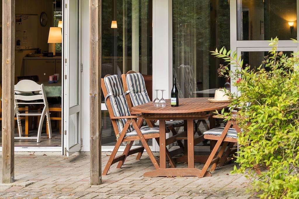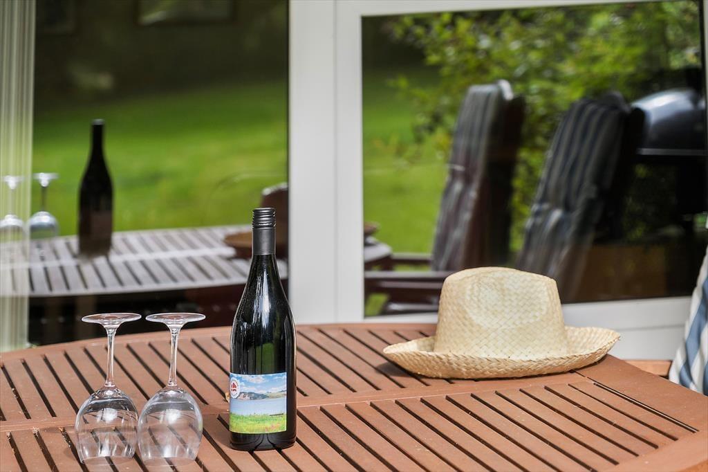 Im Wohnraum sorgen große Fensterpartien für einen schönen Ausblick auf das grüne Grundstück. Bei schönem Wetter wird es Sie allerdings direkt hinaus ins Freie ziehen, sodass Sie den schönen Garten in vollen Zügen genießen. Die nach Süden ausgerichtete Steinterrasse ist teilweise überdacht. Gartenmöbel, ein Grill und eine große Grasfläche versprechen zahllose schöne, entspannte und unterhaltsame Stunden. Auf dem 2.529 m² großen Grundstück steht ein Carport bereit. Zum Ferienhaus gehört ein Kanu, das Sie nach Herzenslust auf dem Fjord nutzen dürfen. Denken Sie aber bitte unbedingt daran, eigene Rettungswesten mitzubringen.
