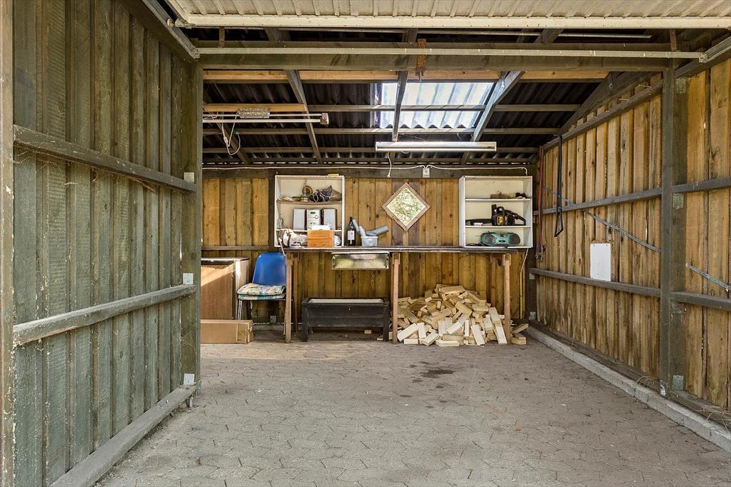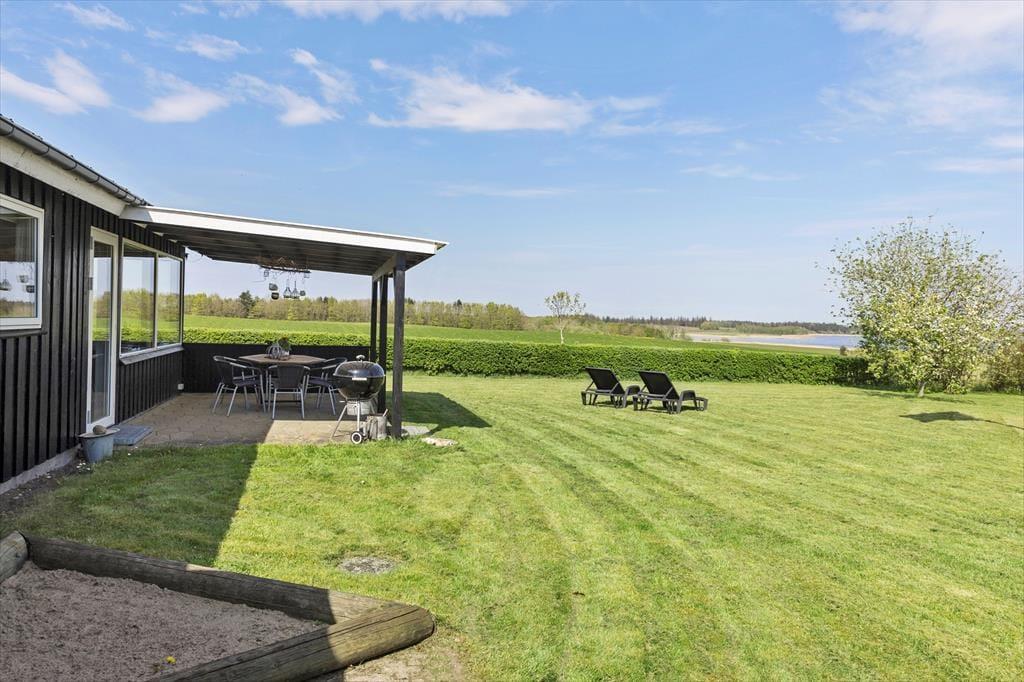 Das 1399 m² große Grundstück liegt am nördlichen Ende der Ferienhaussiedlung. Wenn du also über die Hecke blickst, kannst du die offenen Felder und die schöne Küstenlinie sehen, die sich am Hjarbæk Fjord entlang schlängelt. Die überdachte Terrasse ist ein großartiger Ort, um die Aussicht auf den Fjord zu genießen, aber du kannst dich auch in einen Liegestuhl oder direkt auf den Rasen setzen - es ist toll, den Blick auf die vorbeiziehenden Wolken schweifen zu lassen, während die Vögel zwitschern oder eine Biene in der Nähe summt. Auf dem Rasen haben du und deine Familie viel Platz zum Spielen und für andere Aktivitäten im Freien, oder ihr könnt Abenteuer in der Umgebung erleben.