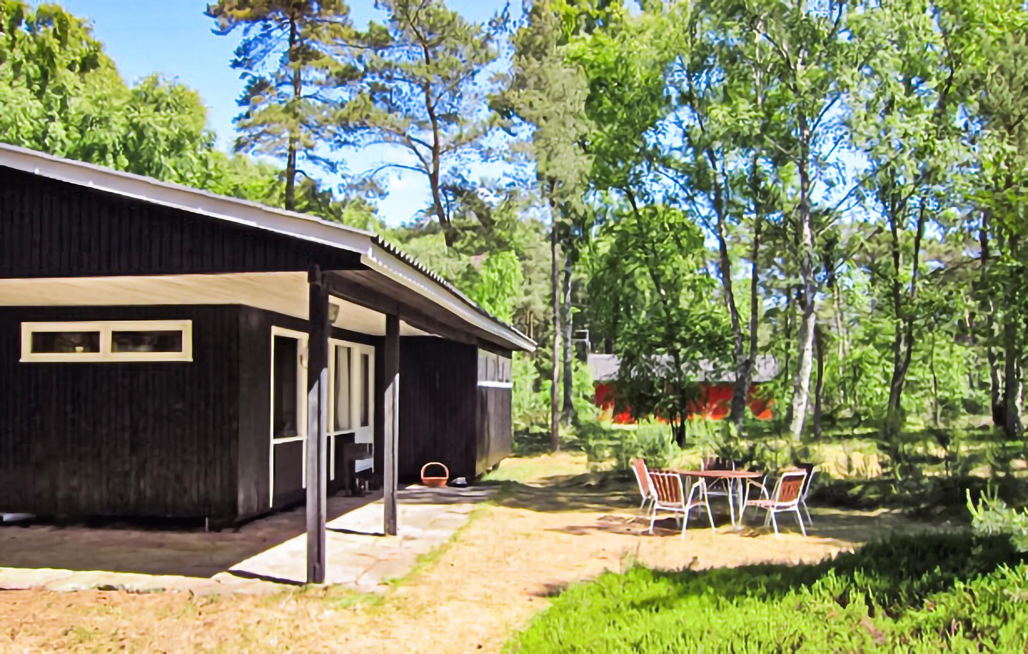 Traditionelles Holzferienhaus auf schönem Naturgrundstück, nur 300 m von einem schönen Sandstrand und 1,7 km vom Golfplatz Dueodde entfernt.