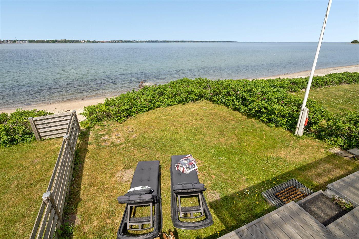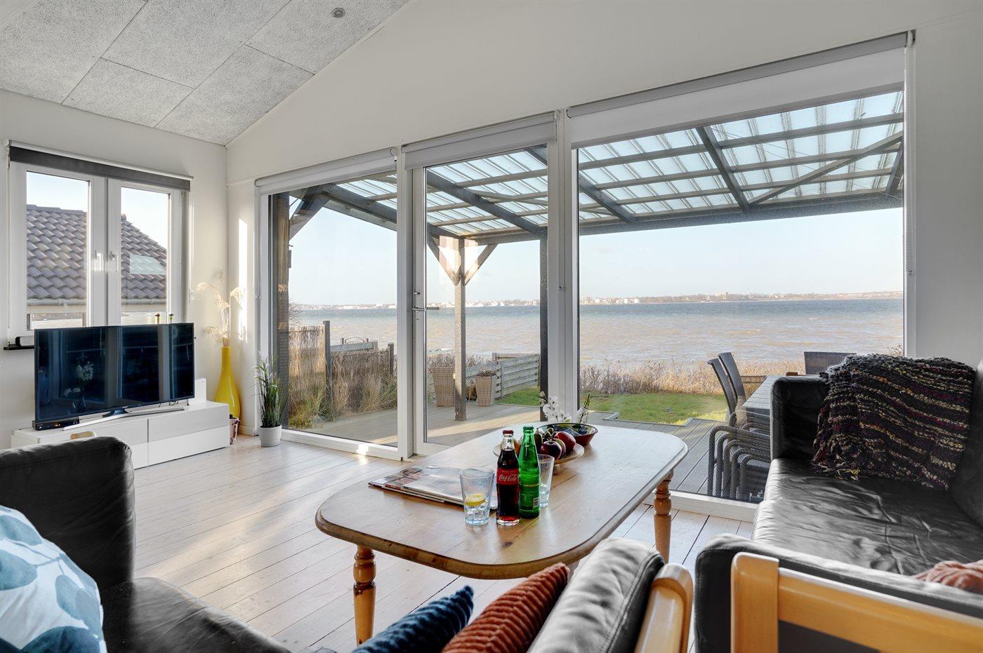 Charmantes Ferienhaus mit Meerblick und Nähe zum Wasser in Strib, Dänemark, ideal für entspannte Urlaubstage.