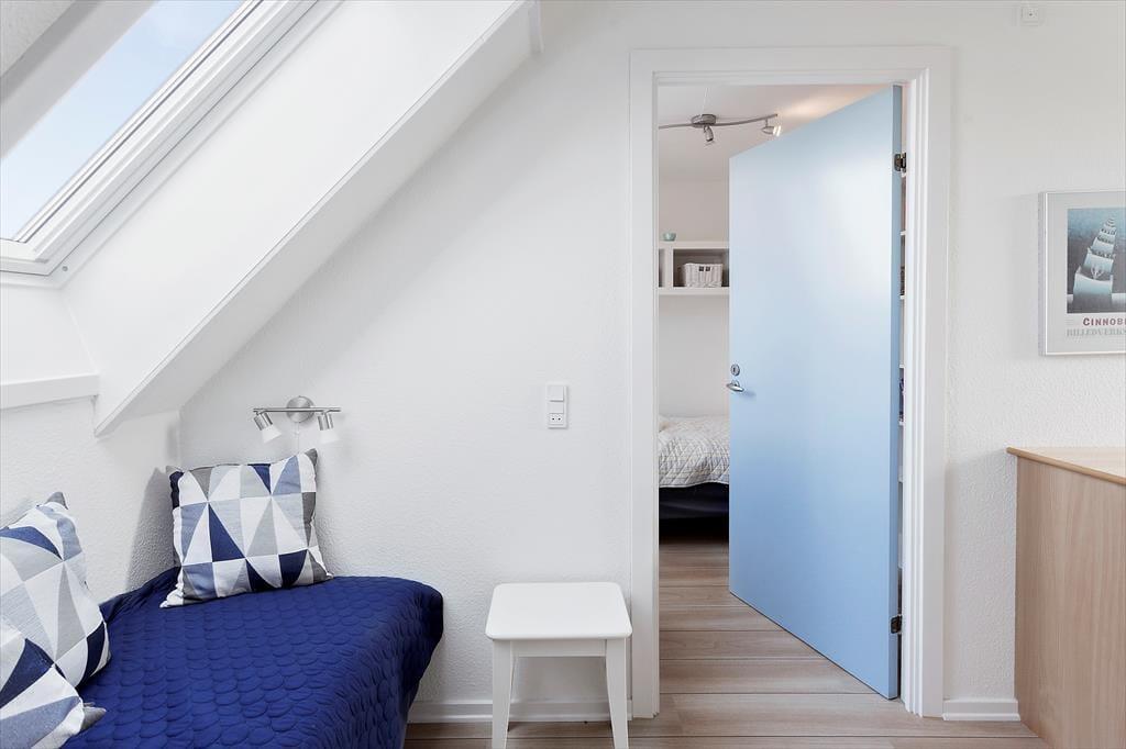 Einzelbett. Es befindet sich im Dachgeschoss im 1. Stock.