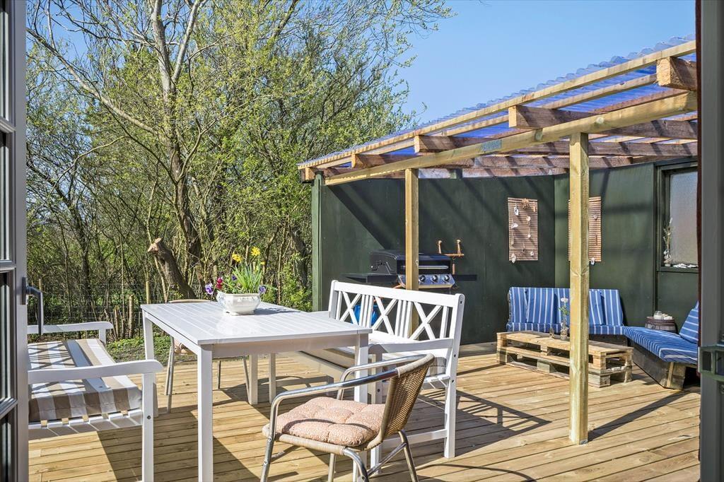 Von der Küche aus hast du direkten Zugang zu einem privaten Außenbereich, in dem du dich aufhalten kannst. Vor dem Haus befindet sich eine sonnige Terrasse, die du kostenlos nutzen kannst. Insgesamt teilst du dir das Grundstück mit drei anderen Ferienhäusern, und im großen Naturgebiet hast du viel Platz zum Ballspielen mit den Kindern, zum Toben mit den Hunden und zum Fangen von Heuschrecken im hohen Gras, während um dich herum die Vögel zwitschern. Die Autos bleiben auf dem Parkplatz, sodass im Gebiet Ruhe und Frieden herrschen. Wenn du mit einem Elektroauto anreist, steht dir auch eine Ladestation zur Verfügung.